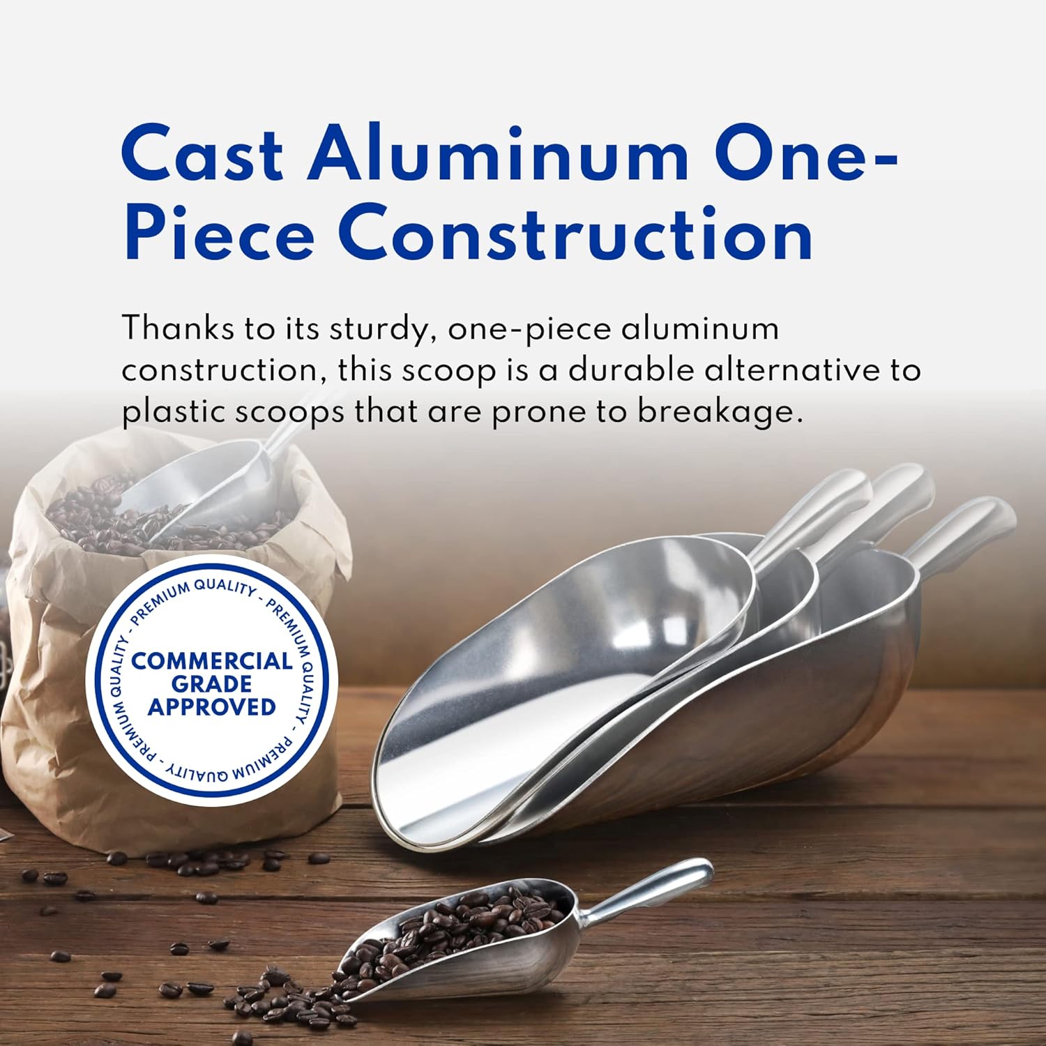 • Commercial-Grade Aluminum utility scoop great for ice, sugar, flour, popcorn, and candy.