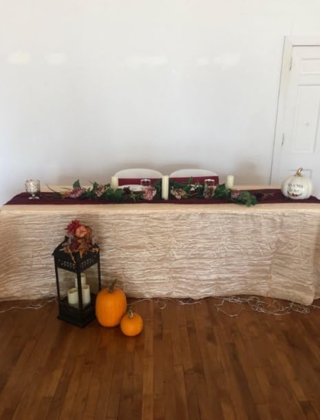 YOUR CHAIR COVERS - 90 x 132 inch Rectangular Crinkle Taffeta Tablecloth - Champagne, Rectangle Table Linens for 6 ft Rectangular Tables, Wedding Crushed Table Cloth