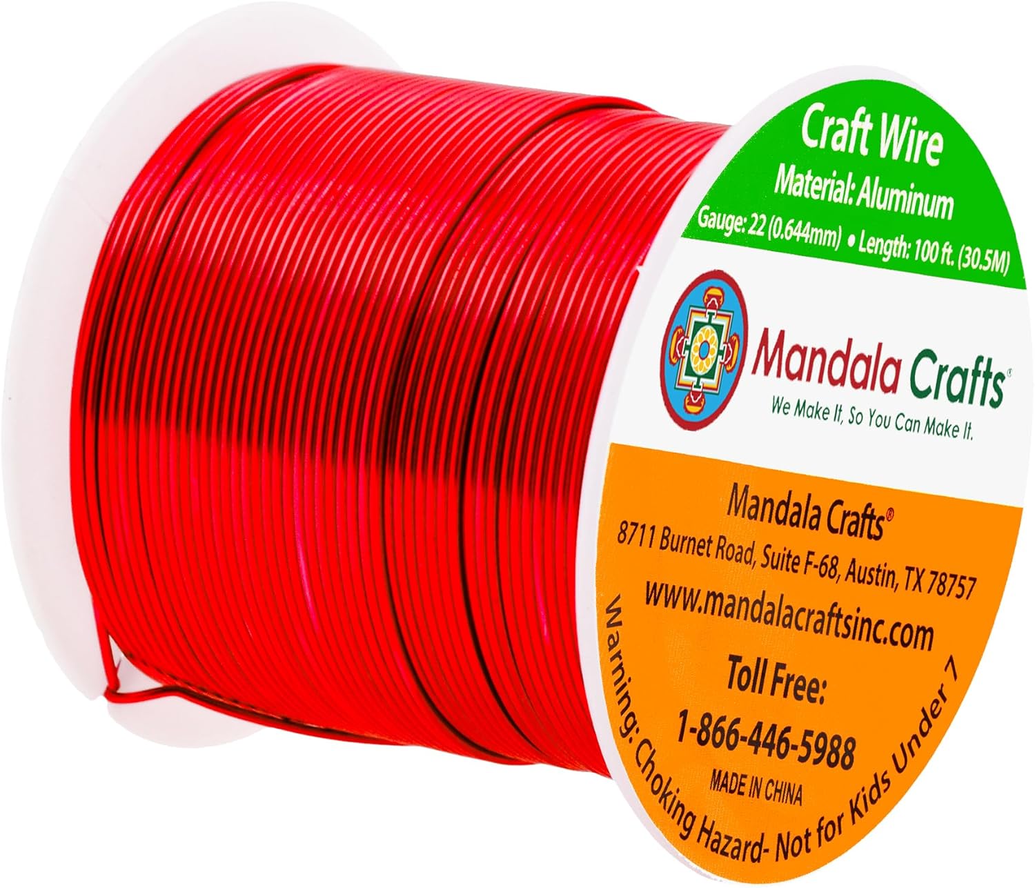 Mandala Crafts 22 Gauge Anodized Aluminum Craft Wire for Jewelry Making - 100 FT Colored Flexible Red Wire - Bendable for Bonsai Armature Crafting Sculpting
