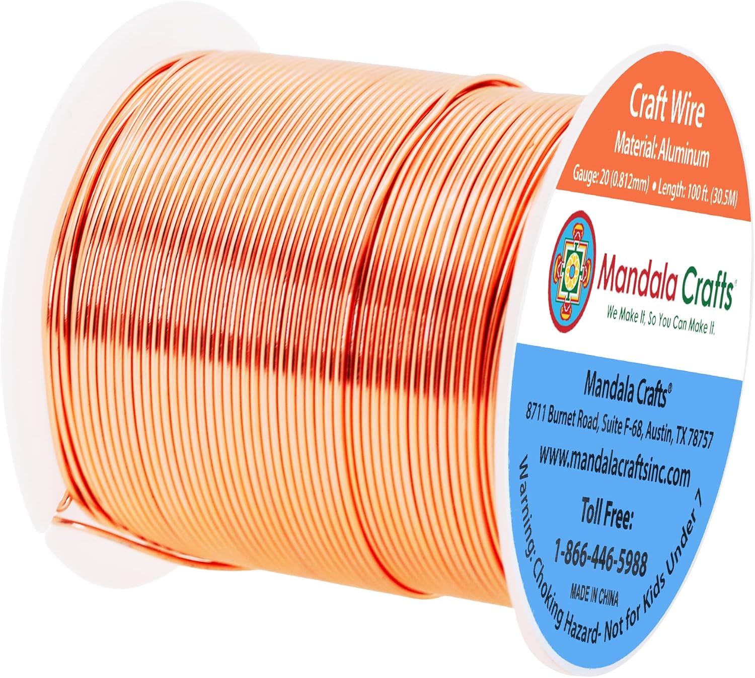Mandala Crafts 20 Gauge Anodized Aluminum Craft Wire for Jewelry Making - 100 FT Colored Flexible Copper Tone Wire - Bendable for Bonsai Armature Crafting Sculpting