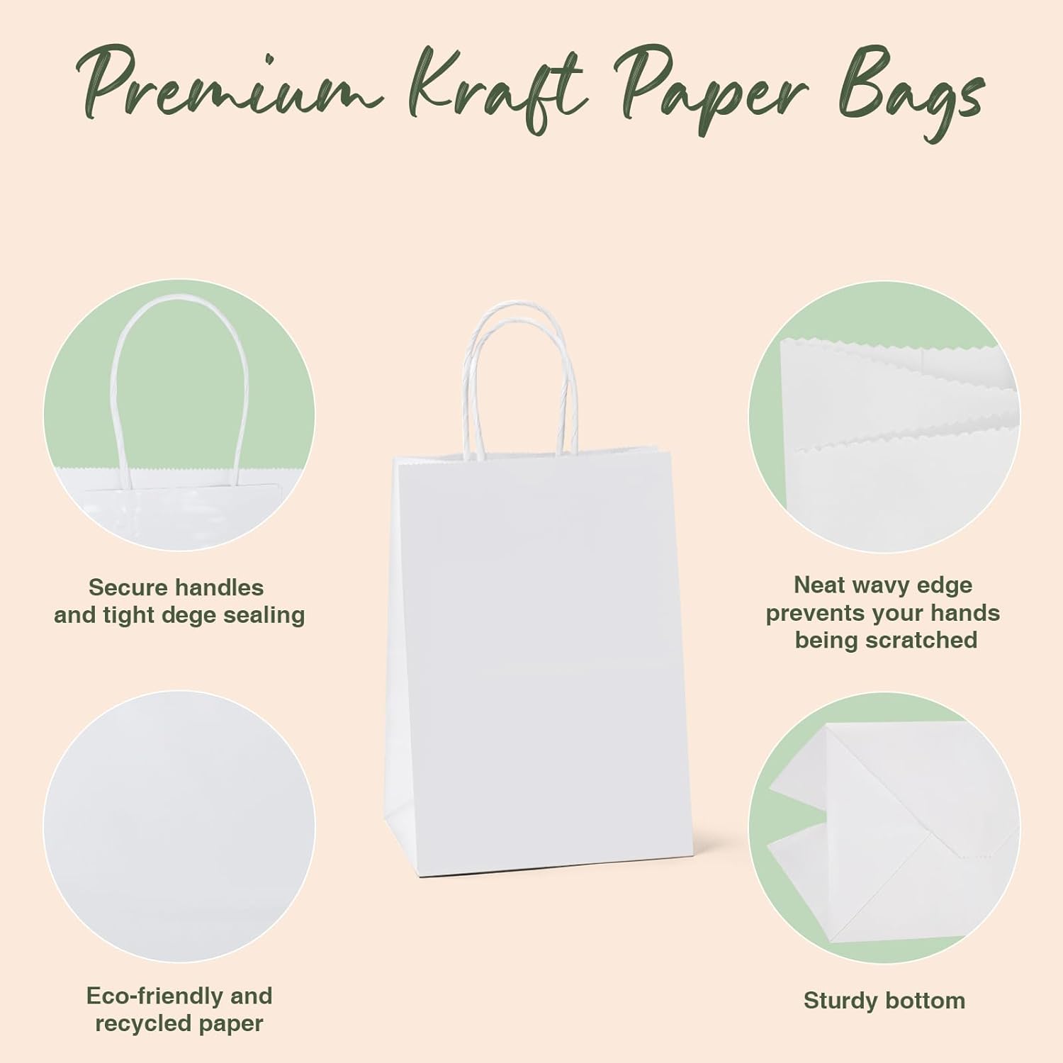 GSSUSA 50 Pcs White Kraft Paper Bags 5.25x3.75x8, Small Paper Bags with Handles for Shopping, Gift, Merchandise, Retail, Party Favor, Wedding, Gift, Bags for Small Business, Boutique