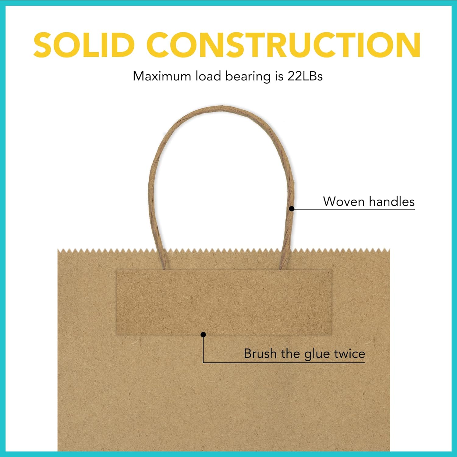 • GSSUSA Shopping Paper Bags with Handles - These brown kraft paper bags measure 16x6x12 inches and come in a pack of 50. Our bags are crafted with two layers of robust hot-melt adhesive and an additional layer of water-soluble adhesive, ensuring superior strength and carrying capacity. The bag's handle features a double-layered kraft paper construction, preventing risk of detachment. Meticulously crafted, our bags not only boast an appealing appearance but also guarantee exceptional product quali