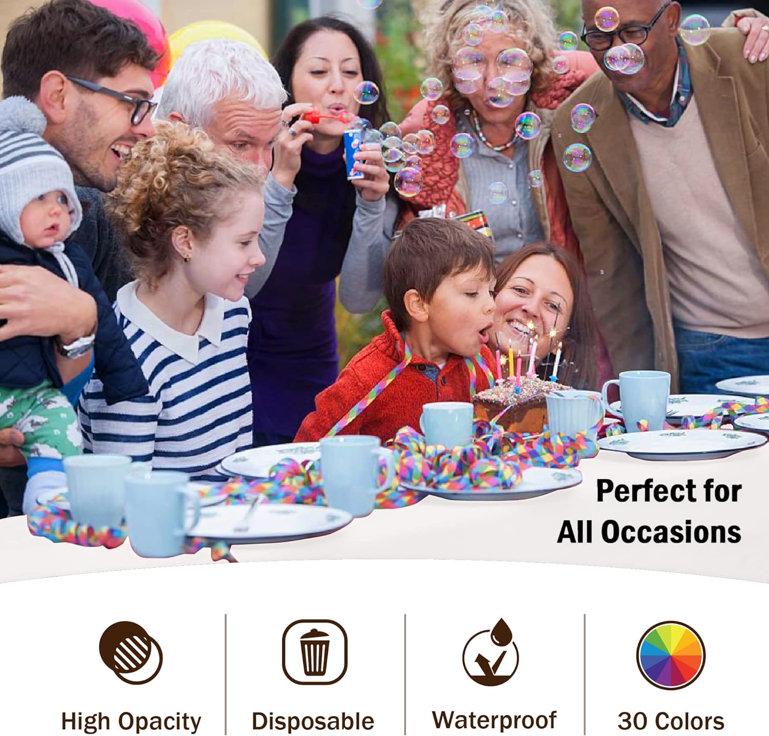 • High opacity: covers any Table with minimal transparency. Great plastic Tablecloth For parties, weddings, holiday party, birthday parties, Christmas, thanksgiving dinner, BBQ, and any other color themed event.
