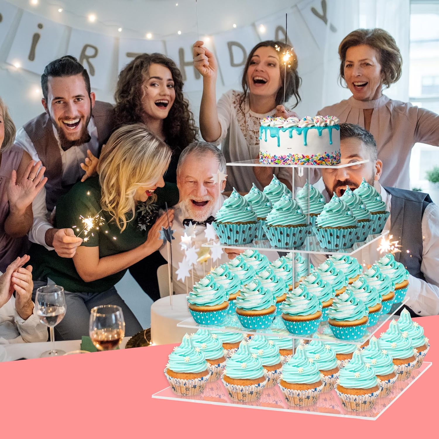 YestBuy 4 Tier Acrylic Cupcake Stand, Premium Cupcake Holder, Acrylic Cupcake Tower Display Cady Bar Party Décor â Display for Pastry(4.7" Between 2 Layers)