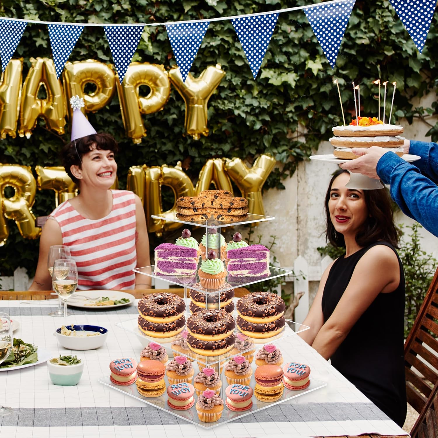 • Tower Design: Our cupcake stand has four acrylic plates with 4.7" distance between them. You can remove any of the superior plates and reassemble them freely. Each pastry rack is made with premium 4 mm thick acrylic, being very durable and resistant.