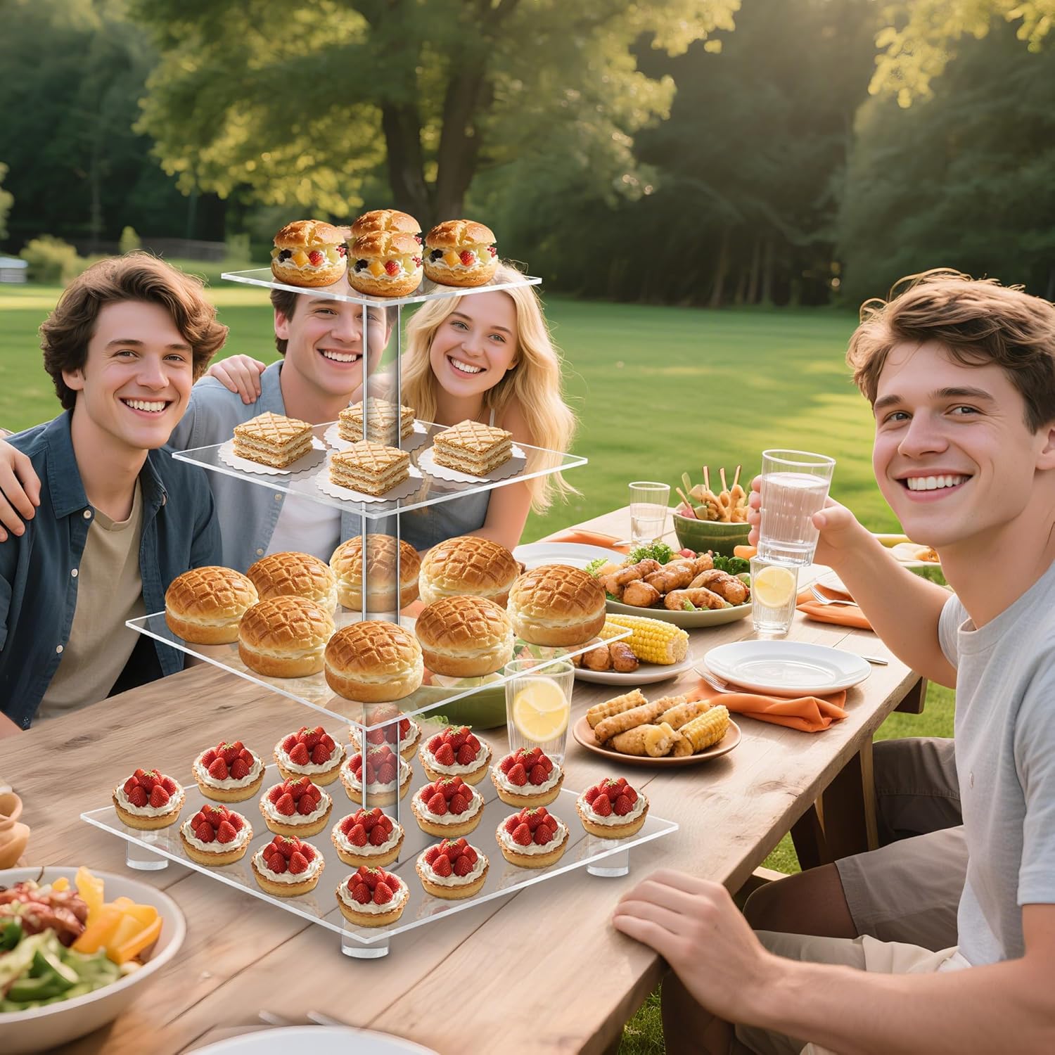 • Tower Design: Our cupcake stand has four acrylic plates with 4.7" distance between them. You can remove any of the superior plates and reassemble them freely. Each pastry rack is made with premium 4 mm thick acrylic, being very solid and stable.