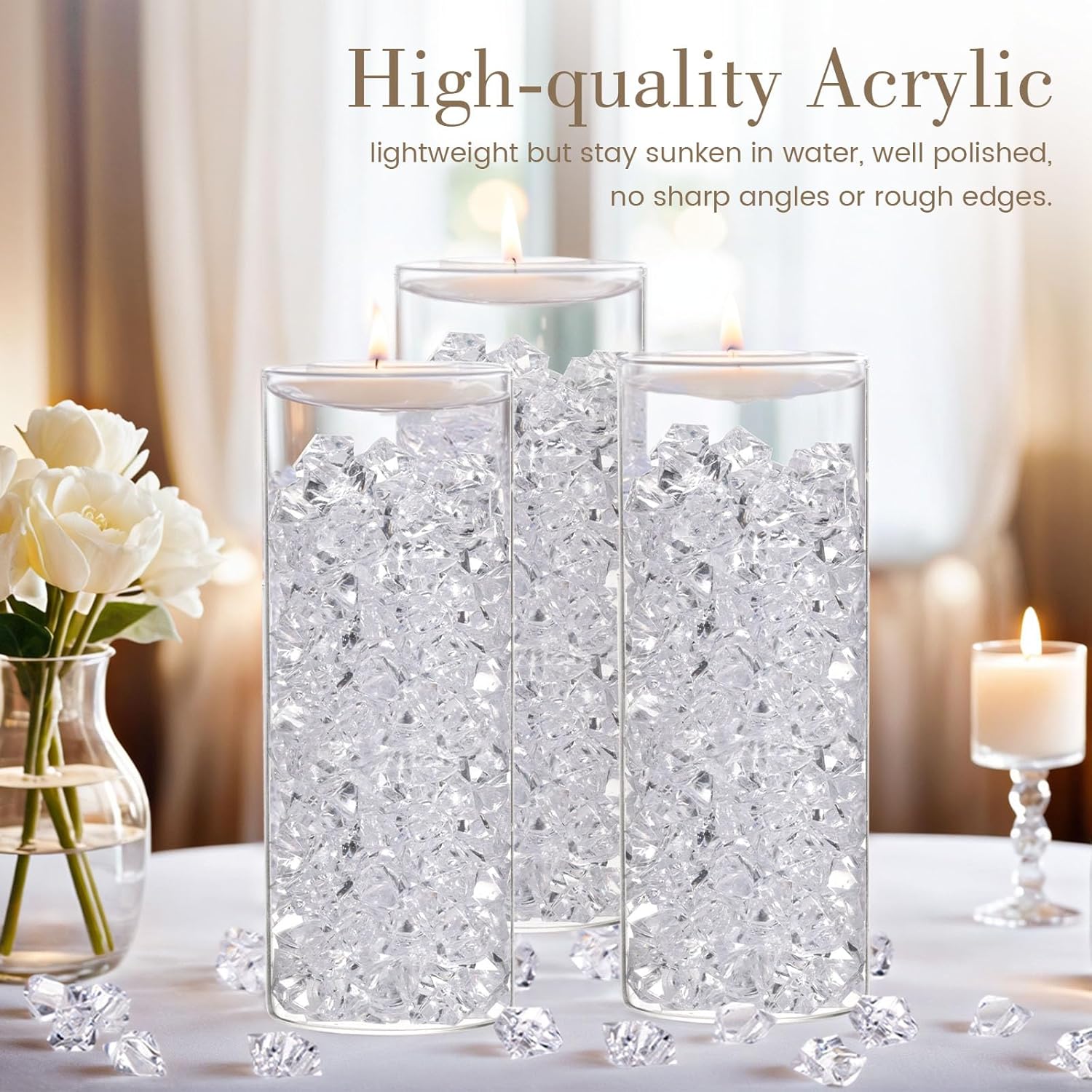 DomeStar Fake Ice, 150PCS Fake Diamonds, Plastic Diamonds Acrylic Rocks Vase Fillers for Centerpieces Wedding Party Table Scatter Food Display