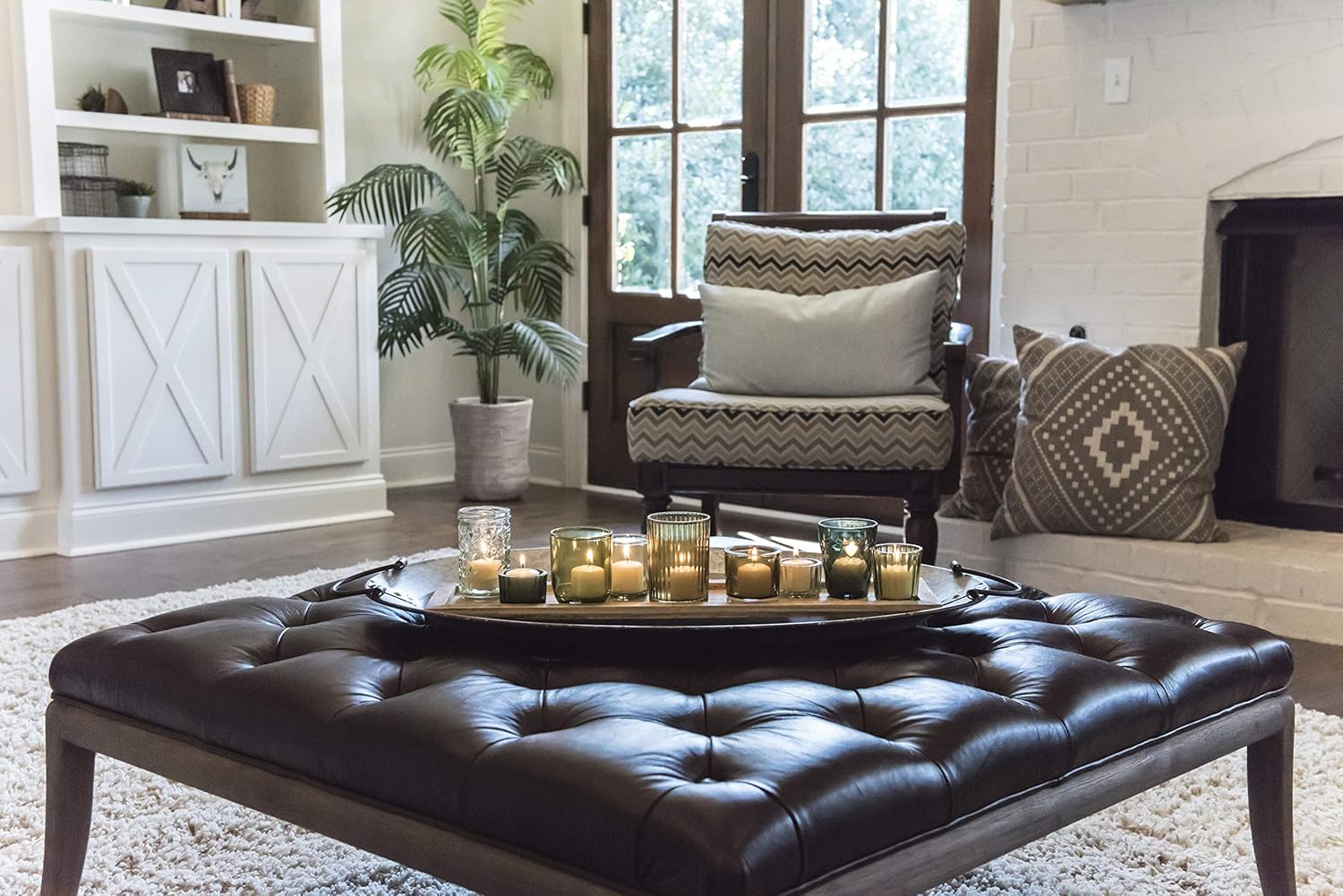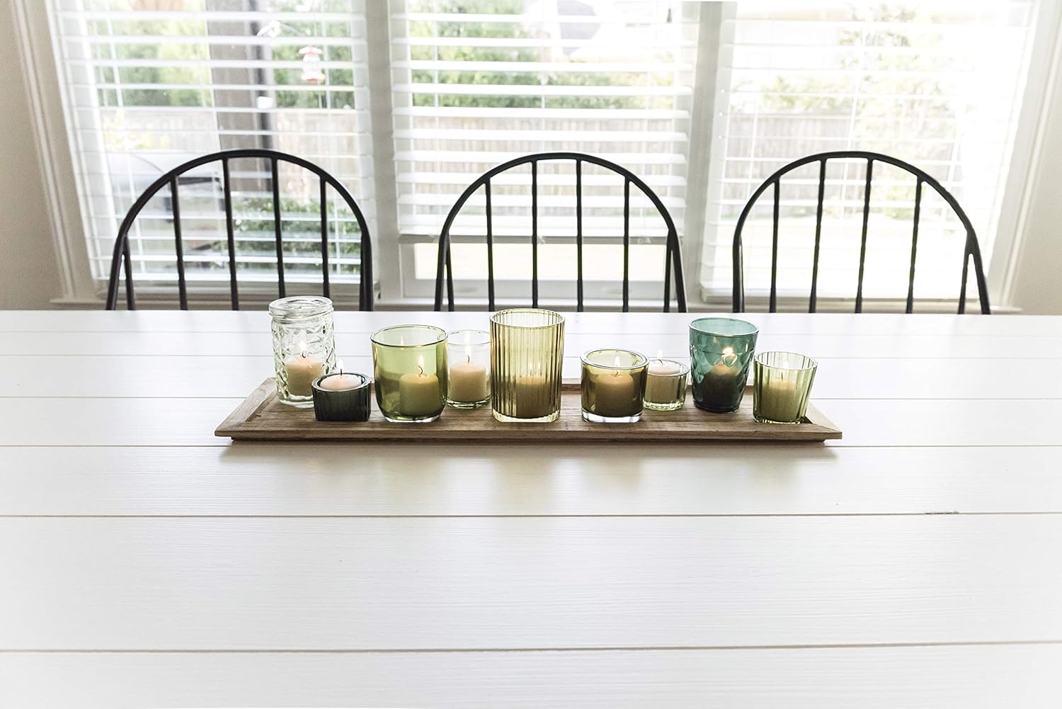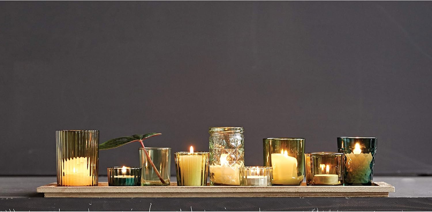 Creative Co-Op Wood Tray with 9 Green Glass Votive Holders