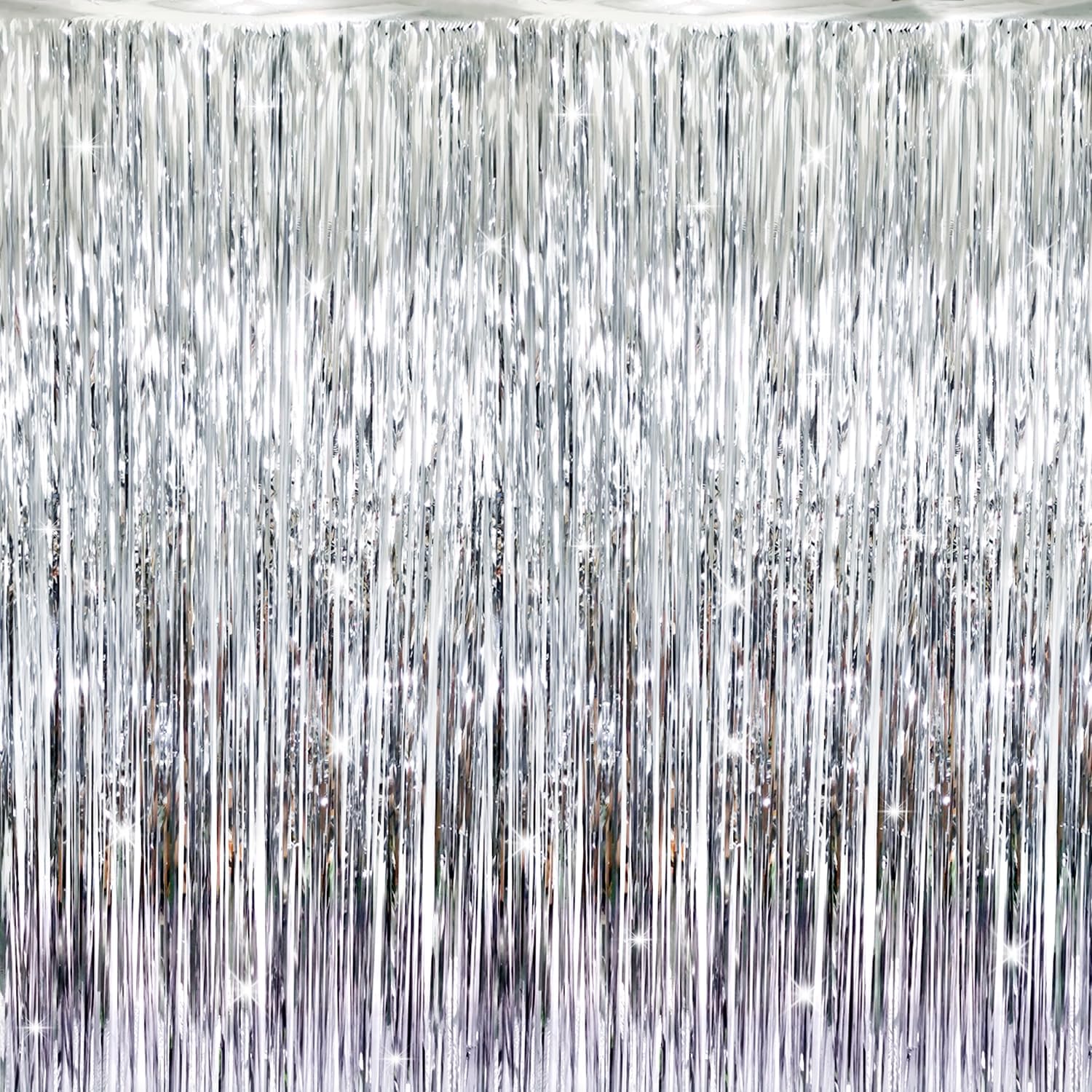 • Package Includes:1 pack silver foil fringe curtain,3.2 ft x9.8 ft each,suitable for hanging on a door or coverage a wall fully