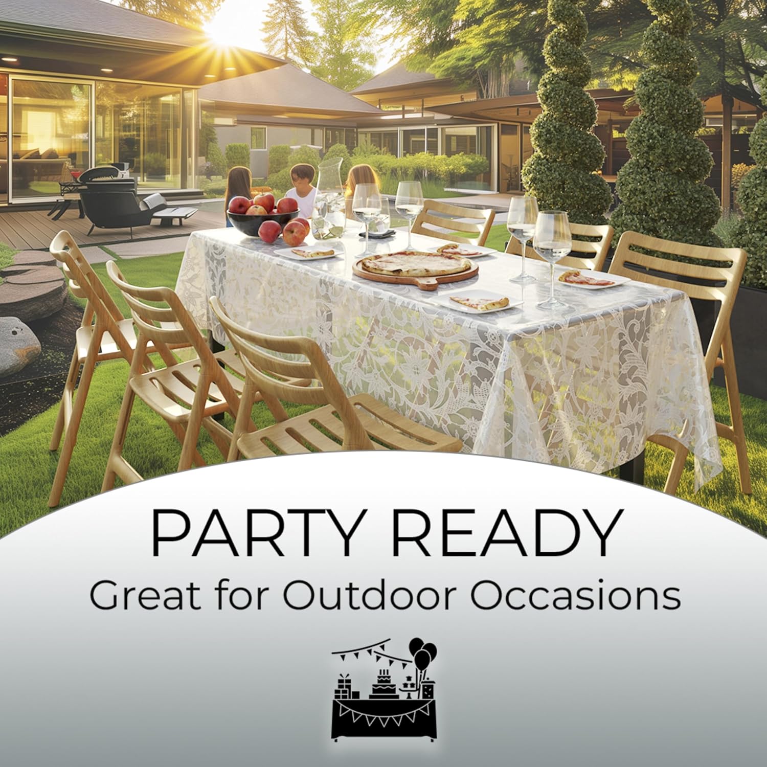 • All Occasions: Whether it's a picnic, party, or holiday gathering, these lace table cloth rectangle table covers are versatile enough for any event. Being the standard size of 8 ft table cloth rectangle table they make a great use as a picnic table cover, outdoor table cover for parties, or elegant outdoor table clothes to elevate any occasion effortlessly.