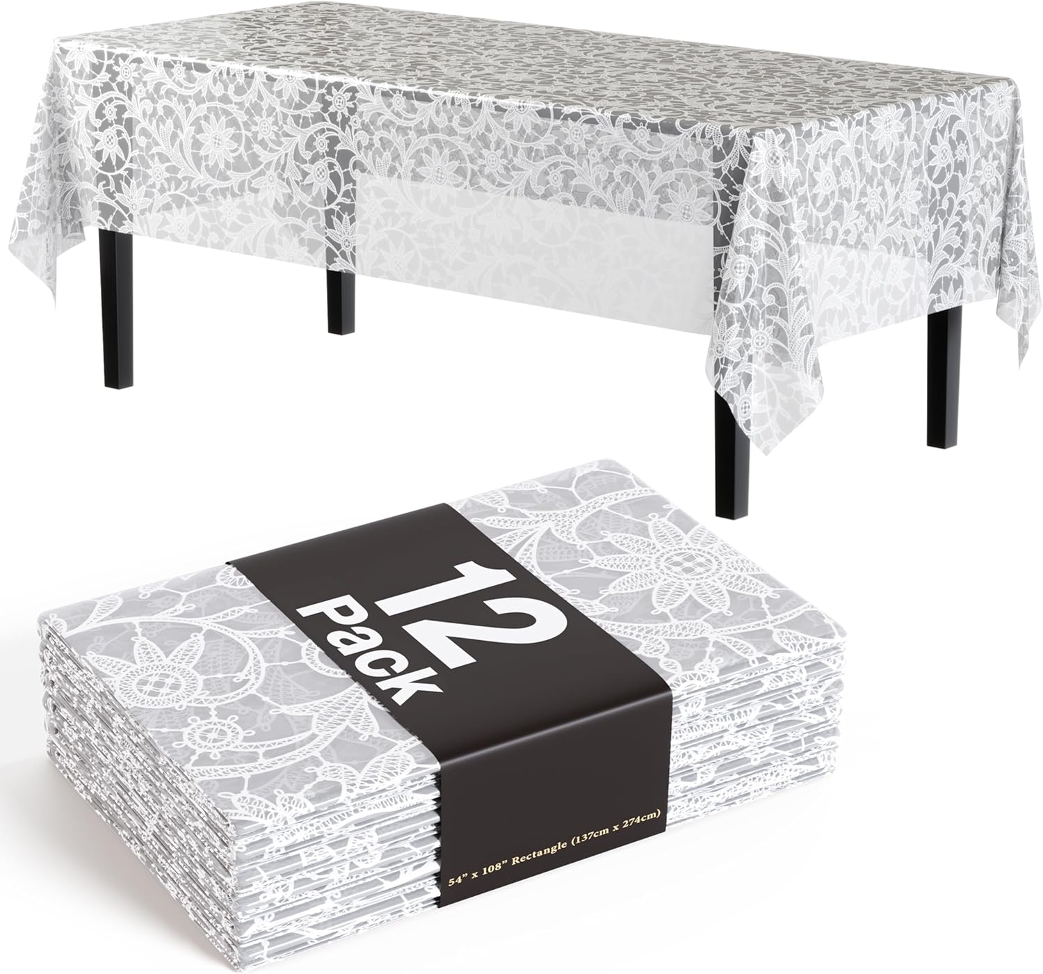 • Includes: This 12-pack of transparent white lace table cloth rectangle table coverings offers elegant protection for your furniture. Each white table cloth rectangle measures 54" X 108", making it ideal for standard tables. These clear plastic table cloth disposable covers combine functionality with beauty. Being disposable tablecloth yet fancy flower tablecloth at the same time.
