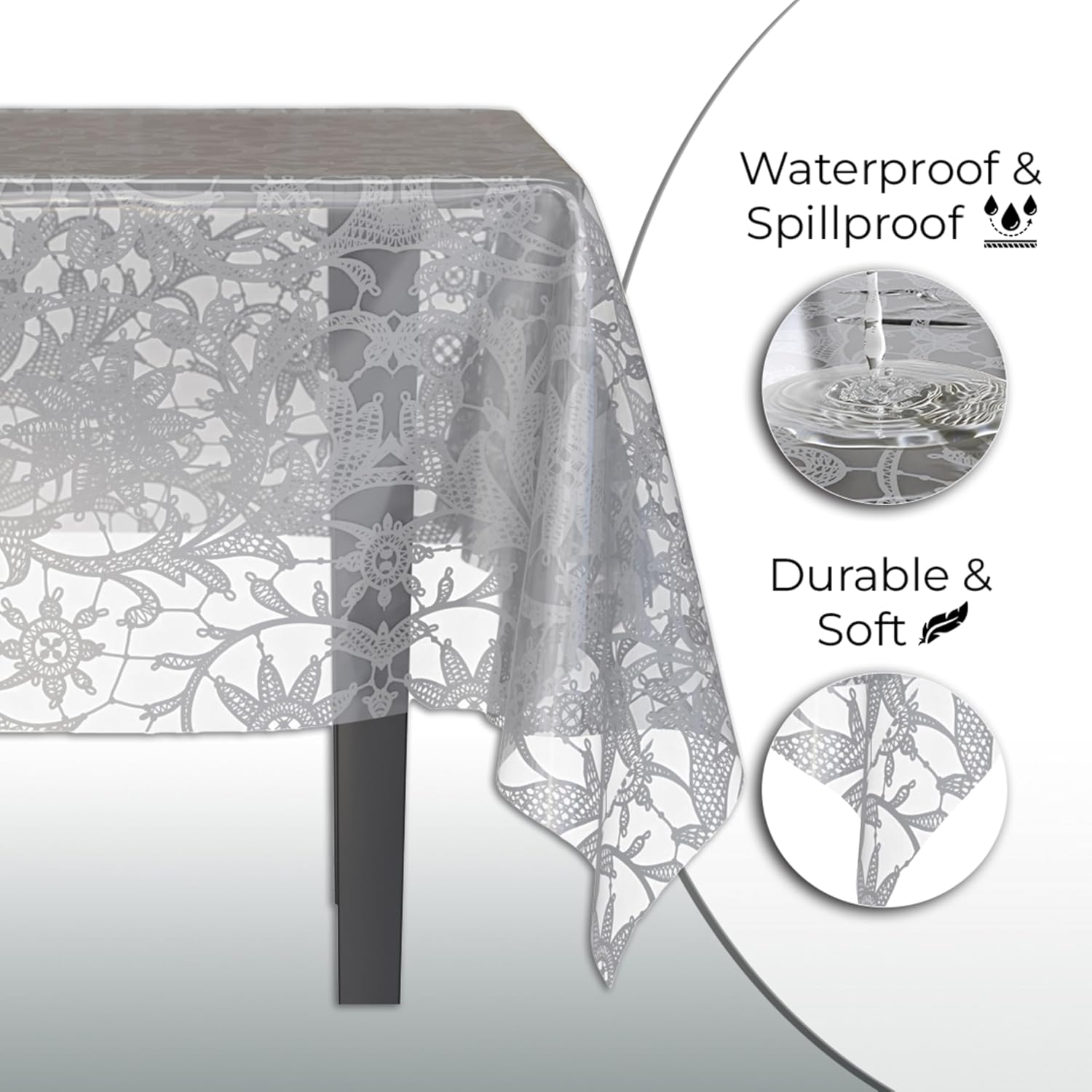 • Disposable: Enjoy easy cleanup with these plastic tablecloths for rectangle tables. Designed for single use, these plastic table cloths offer the practicality of a plastic table cover with the beauty of lace, perfect for events or everyday dining. After your party simply toss out these plastic tablecloth without worry.