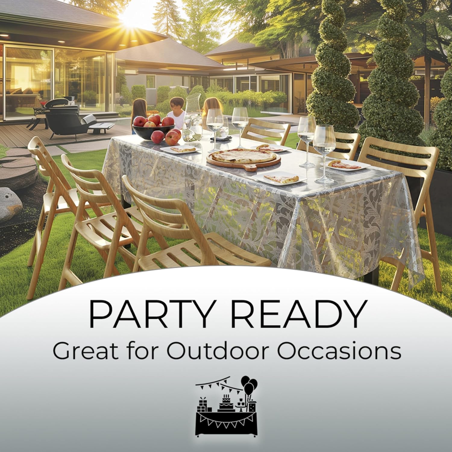 • All Occasions: Whether it's a picnic, party, or holiday gathering, these lace table cloth rectangle table covers are versatile enough for any event. Being the standard size of 8 ft table cloth rectangle table they make a great use as a picnic table cover, outdoor table cover for parties, or elegant outdoor table clothes to elevate any occasion effortlessly.