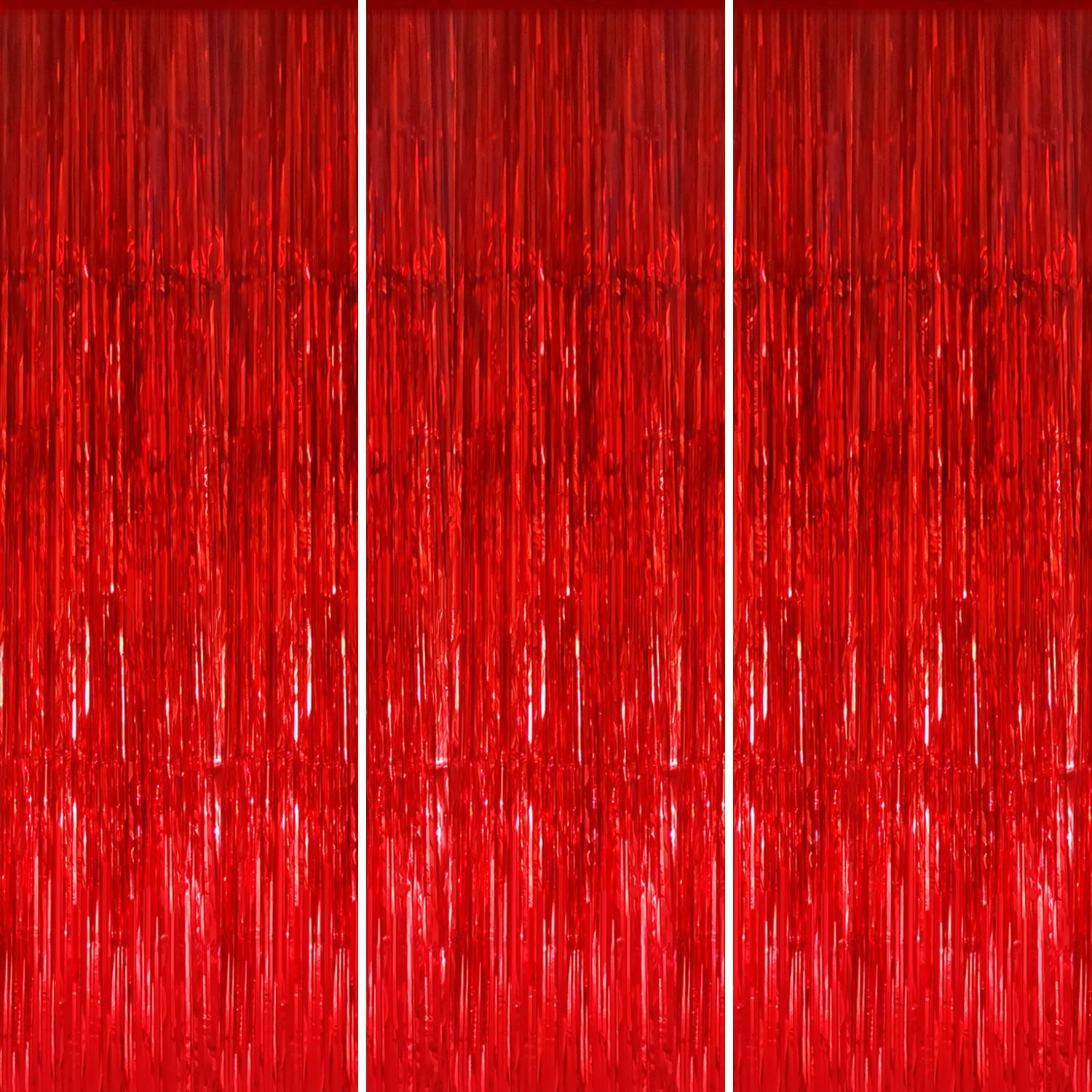 • Package Includes:3 pack red foil fringe curtains,3.2 ft x9.8 ft each,suitable for hanging on a door or coverage a wall fully