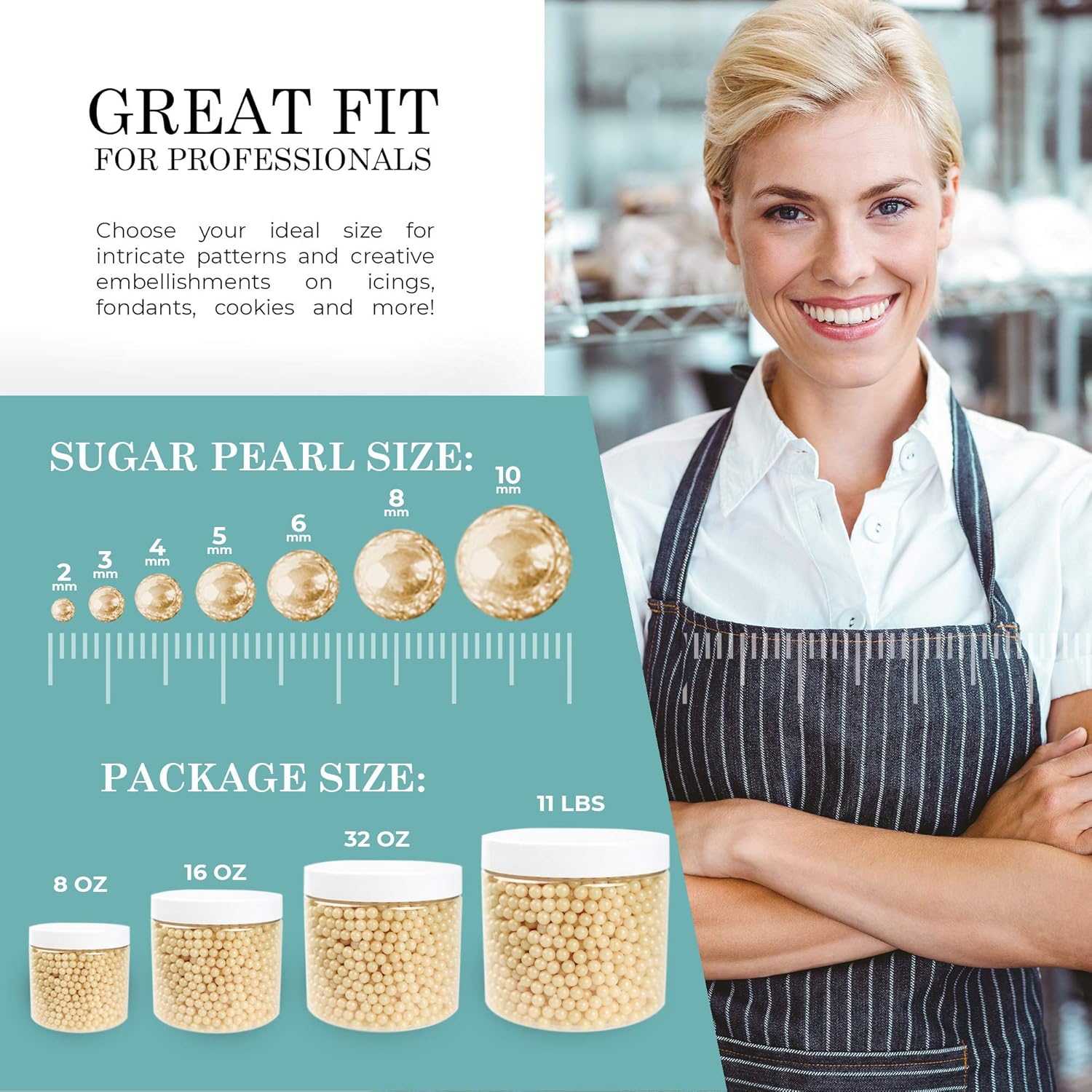 • 🎂 DECORATE MORE – Unlike other toppings, each pack of our cake supplies contains enough sparkling balls to adorn many treats. Bedeck more desserts with our 8 oz. ivory sugar pearls.