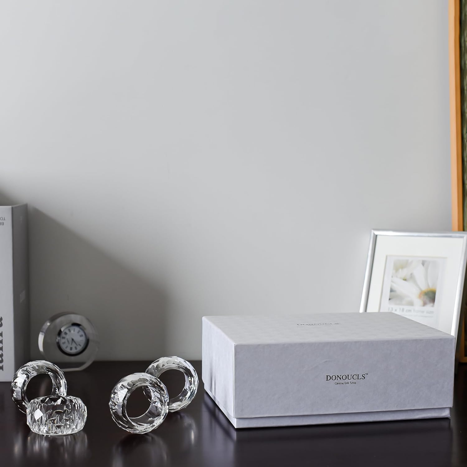 Crystal Napkin Rings Holders - 2 Inch Set of 4, Party Wedding Set Christmas Decorations for Table Dinner