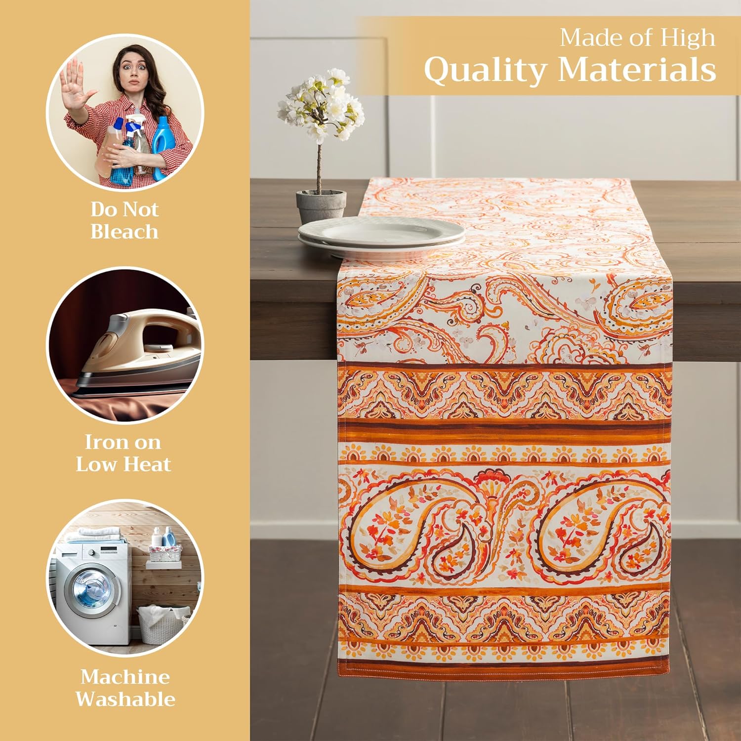 • Enhance Your Home: Crafted from 100% cotton, this reusable table runner adds a warm, seasonal touch to your dining decor. Ideal for Thanksgiving, Halloween decorations, or Christmas decorations—pair it with matching linens for an elegant fall or holiday gift