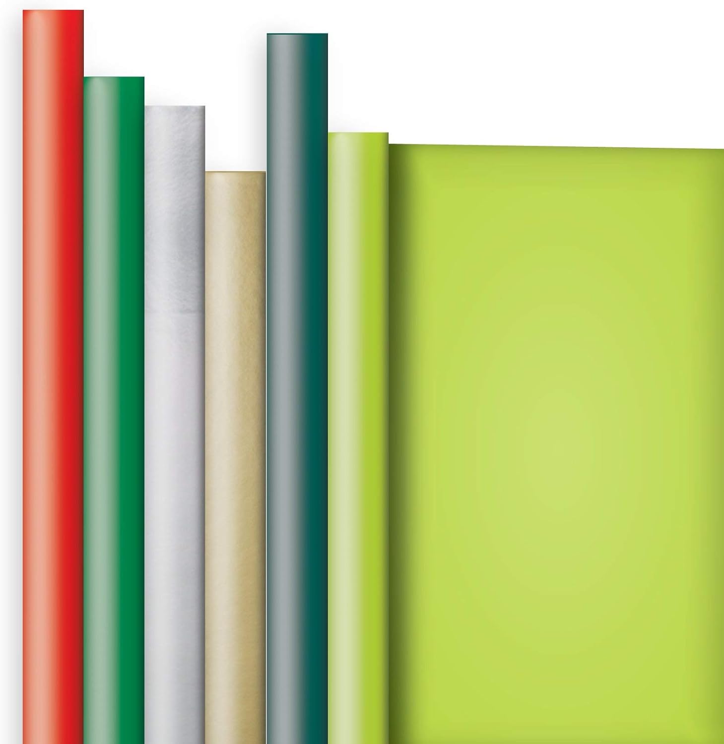 Jillson Roberts 6 Roll Solid Color Gift Wrap, Red,Green,Hunter,Gold,Silver,Lime