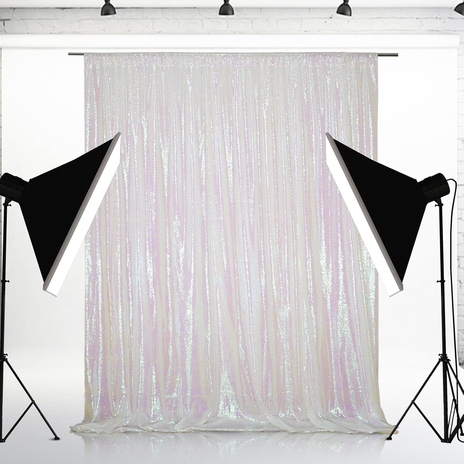 Eternal Beauty White Iridescent Sequin Backdrop, 4x7 Ft Glitter Background Curtains for Shimmer Photography Party Wedding Birthday Back Drop Decor
