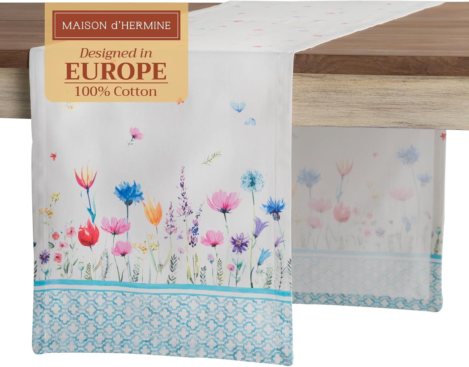 Maison d' Hermine Table Runner 100% Cotton Single Layer Table Runners 108 inches Long Decorative for Home Kitchen Dining Party Wedding Bridal Shower Spring Summer (Flower in The Field, 14.50" x 108")