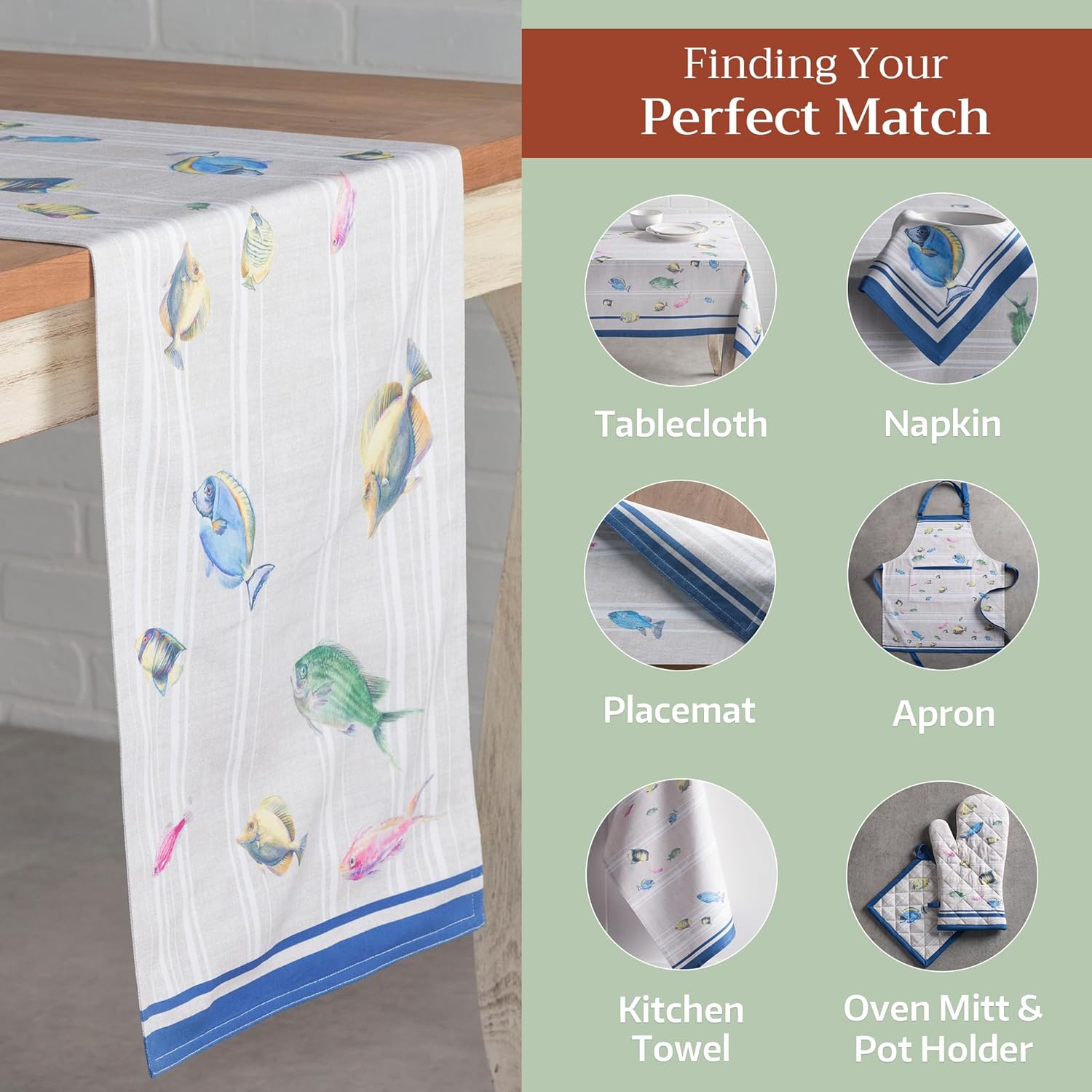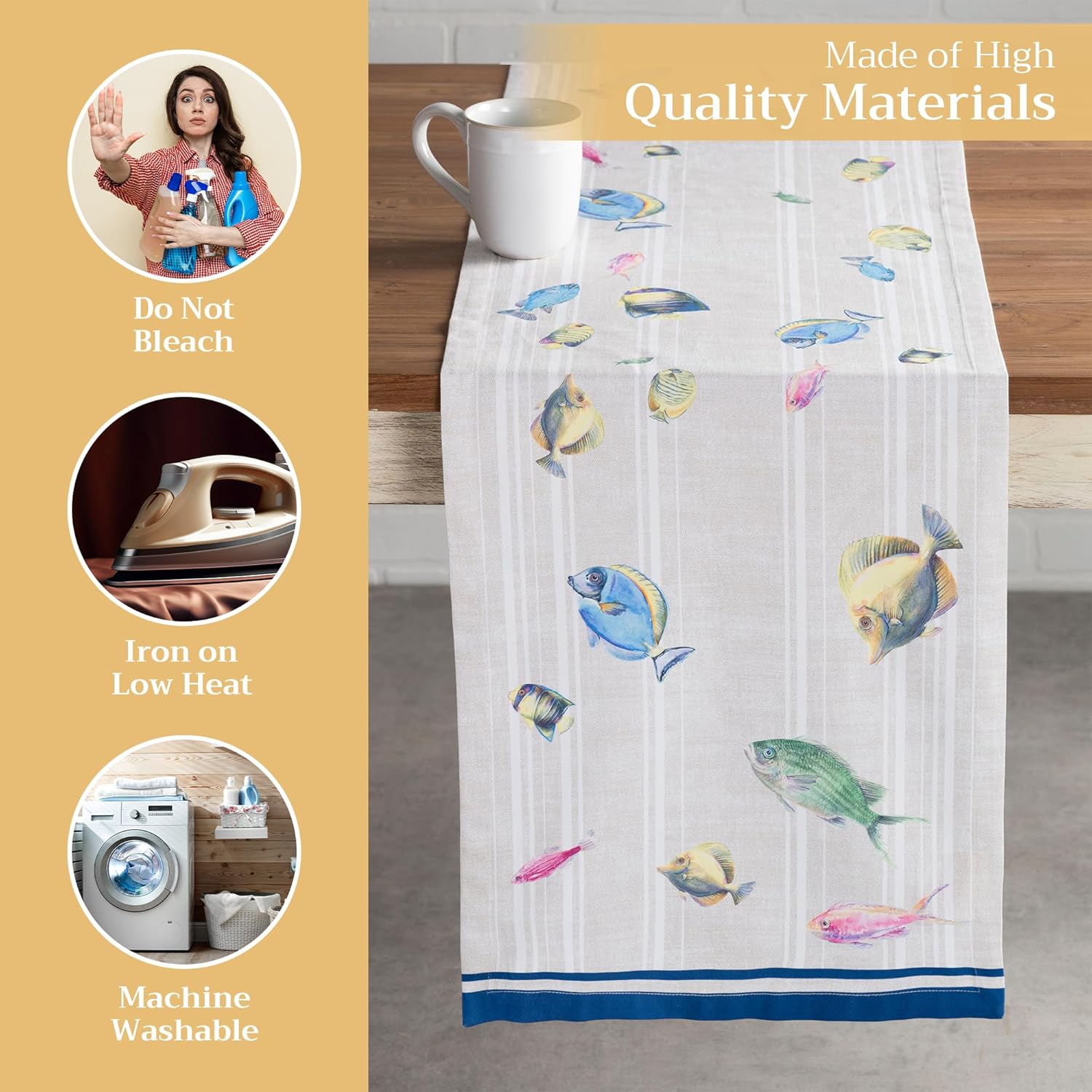 Maison d' Hermine Table Runner 100% Cotton Double Layer Table Runners 72 inches Long Decorative for Home Kitchen Dining Party Baby Shower Wedding Bridal Shower Spring Summer (Poisson, 14.50" x 72")