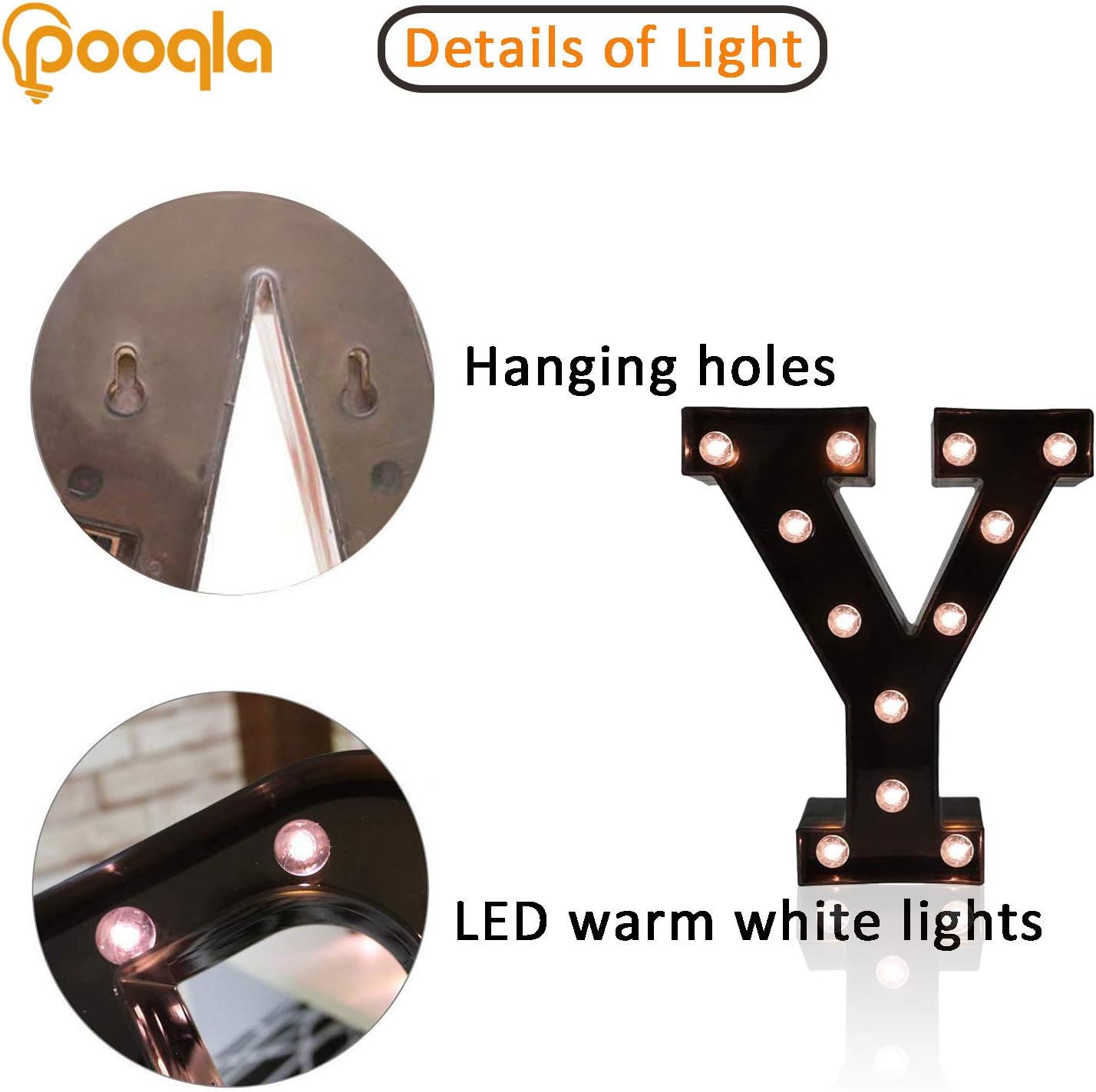 Decorative LED Illuminated Letter Marquee Sign - Alphabet Marquee Letters with Lights For Wedding Birthday Party Christmas Night Light Lamp Home Bar Decoration Y, Black