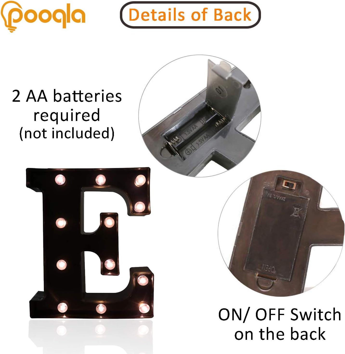 Decorative LED Illuminated Letter Marquee Sign - Alphabet Marquee Letters with Lights For Wedding Birthday Party Christmas Night Light Lamp Home Bar Decoration E, Black