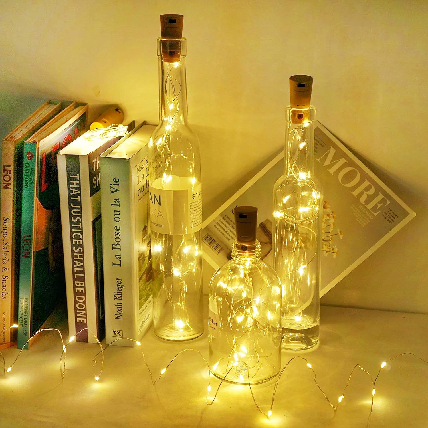 • 【Easy to Use and Install】: Each Cork with a ON/OFF Switch. Easy to turn on and off switch. Our bottle lights are easy to fit into the top of the wine bottle.You don't have to drill a hole in the bottle. Just Simply Switch on the Lights and Enjoy these Amazing Glaring Fairy Lights.