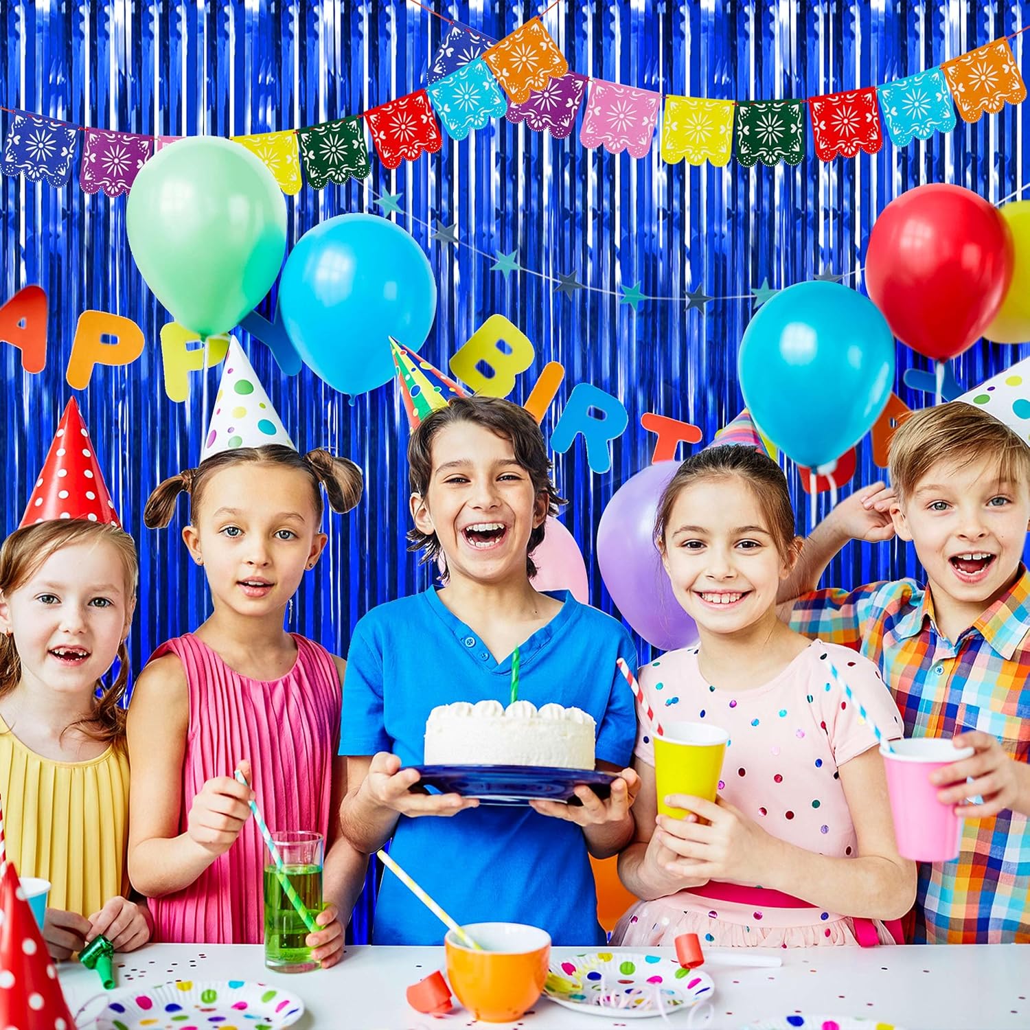 • Package includes:4 pack blue foil fringe curtains with exquisite packaging