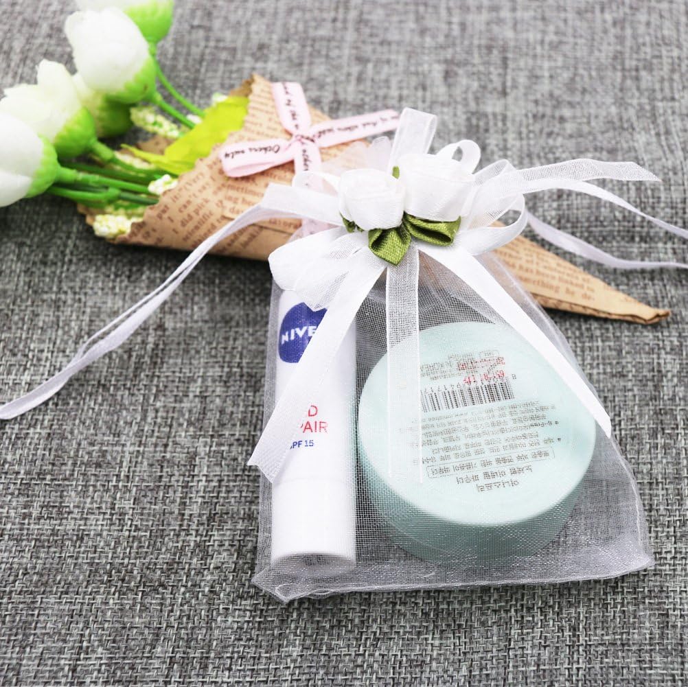 SumDirect Rose Organza Gift Bags - 50Pcs 4x5 inch White Wedding Favor Gift Bags, Jewelry Pouches with Drawstring for Party Wedding Christmas Valentine