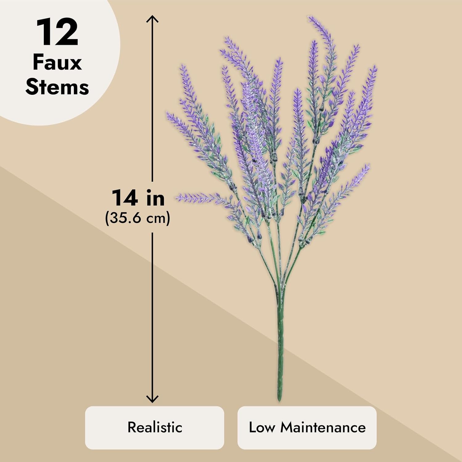 Juvale 12 Bundles Lavender Artificial Flower Stems - 2" D x 3" W x 14" H - Purple - Weather Resistant Artificial Flowers for Outdoors & Wedding Centerpieces & Door Wreaths