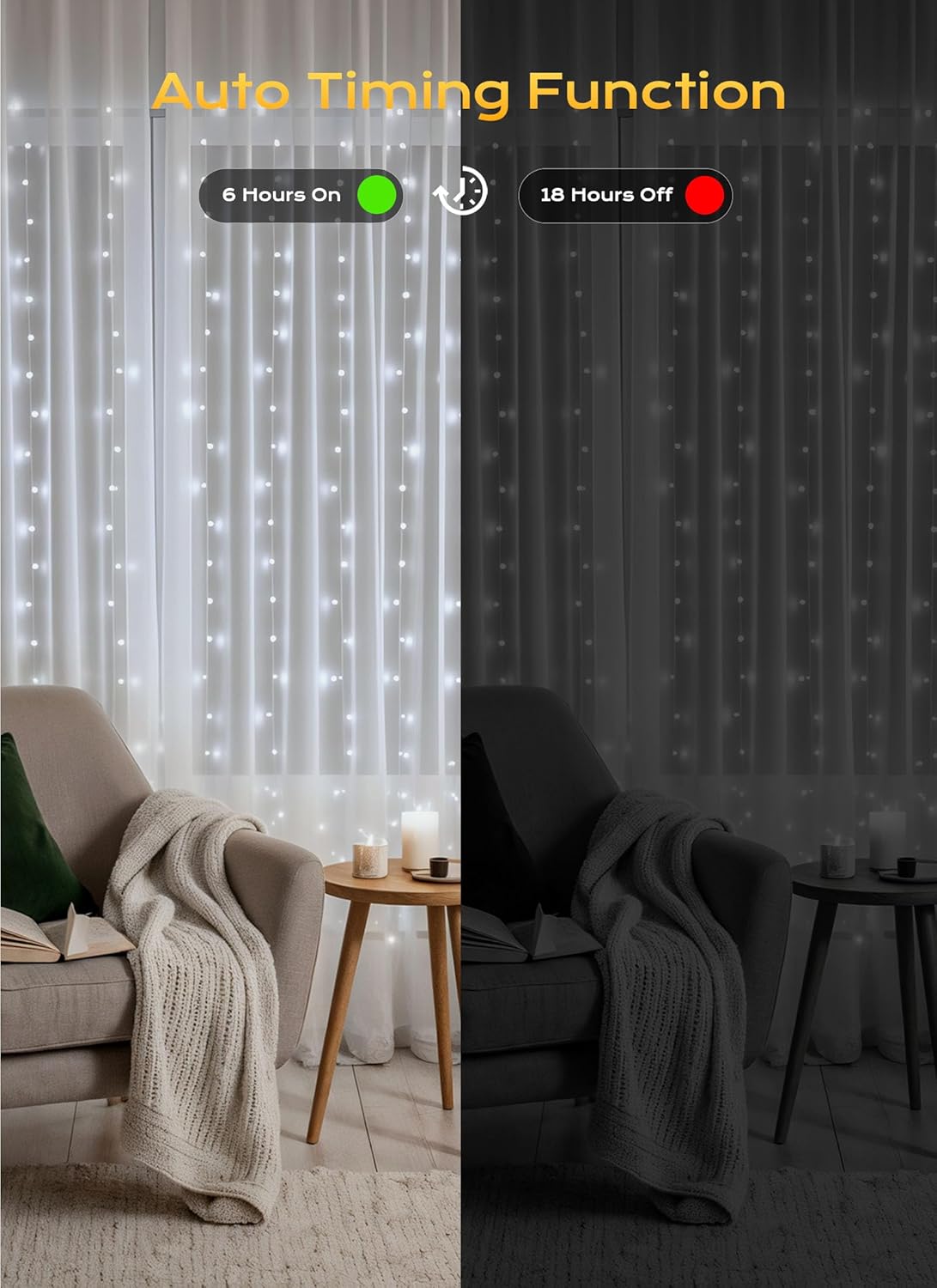 • Waterproof & Flexible - Brightown waterproof curtain lights are rated IP44 for safe indoor and outdoor use (Please note that the adapter is not waterproof, please keep it dry when using it somewhere wet or raining). Made with durable silver wire, Brightown string lights are flexible enough to shape, wrap, or drape over windows, walls, or other surfaces.