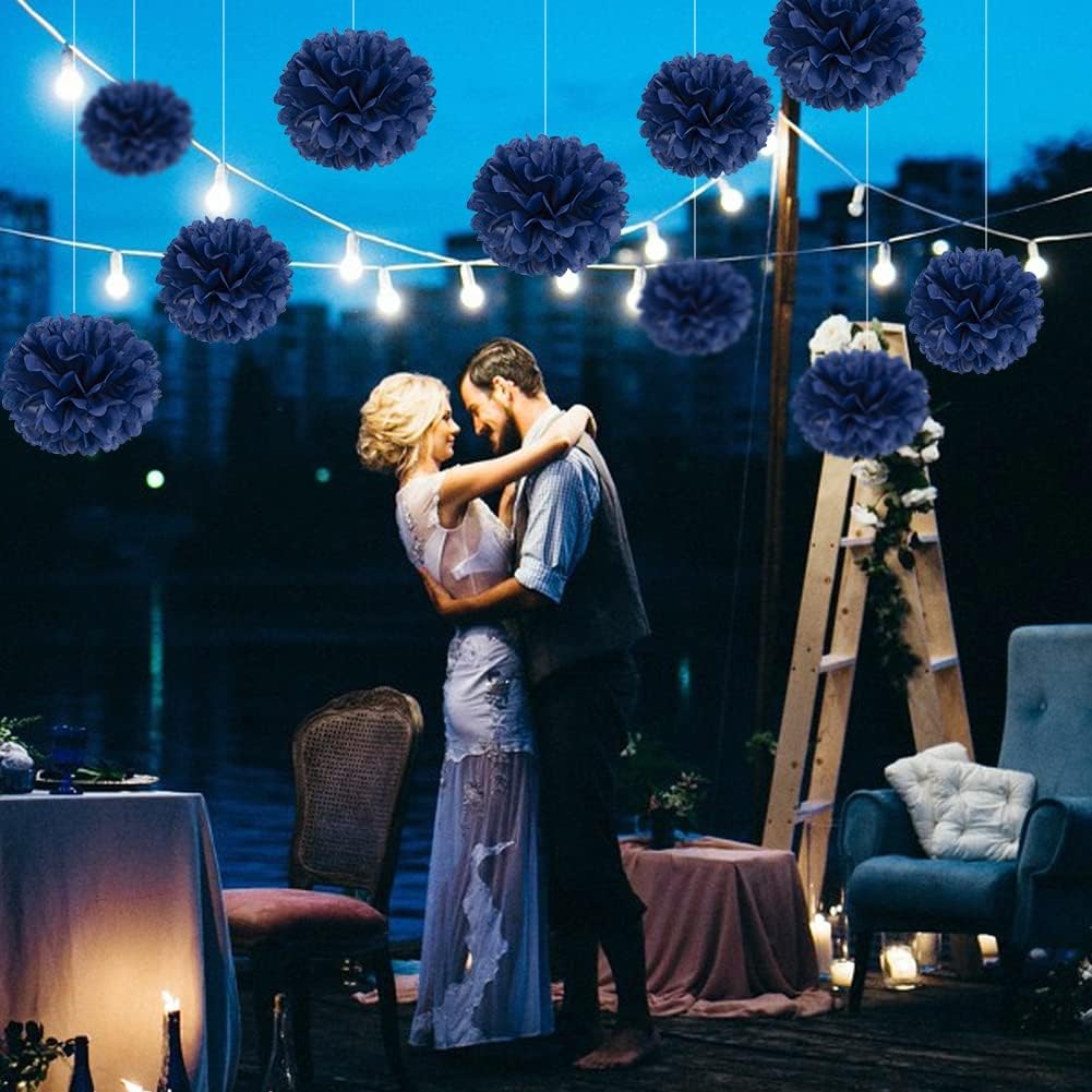 10 Pcs Paper Pom Poms Flowers for Wedding, Birthday Party, Baby Shower, Nursery Decor, Bachelorette Party Hanging Decor, Easy Joy (10 inch, Navy Blue)