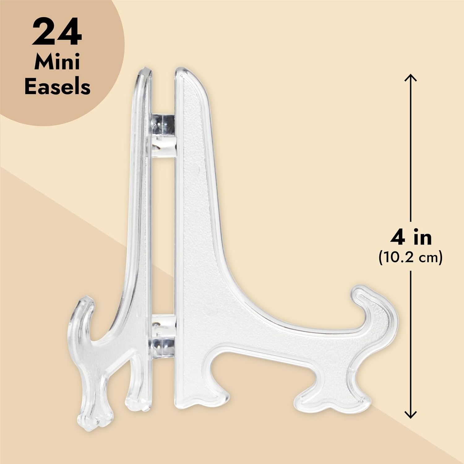 Juvale Clear Mini Easels for Place Cards - 4-Inch Clear Plastic, Pack of 24 - Easels for Pictures - Picture Holders for Tables
