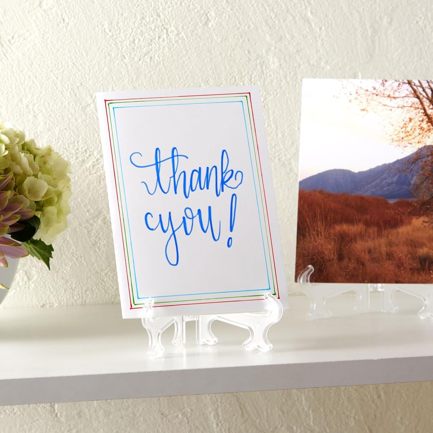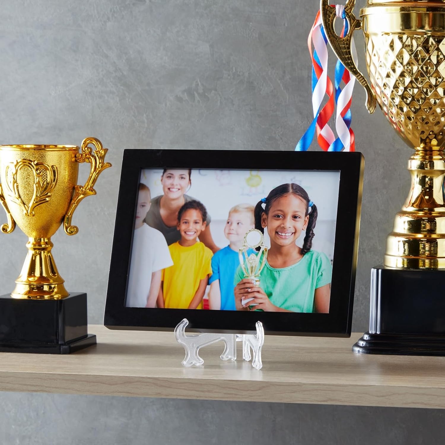• Durable and Lightweight: Crafted from clear, lightweight plastic, these picture holder stands combine reliability with portability. Their pedestal base ensures stability, whether used as a card holder stand or a photo display