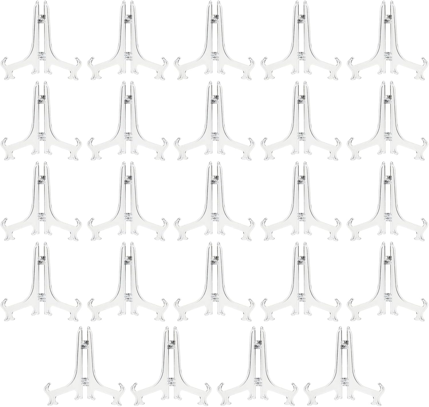 • Dimensions: Each small clear plastic display easel measures approximately 5.3 inches tall; perfect for holding small plates, knick-knacks and home decor