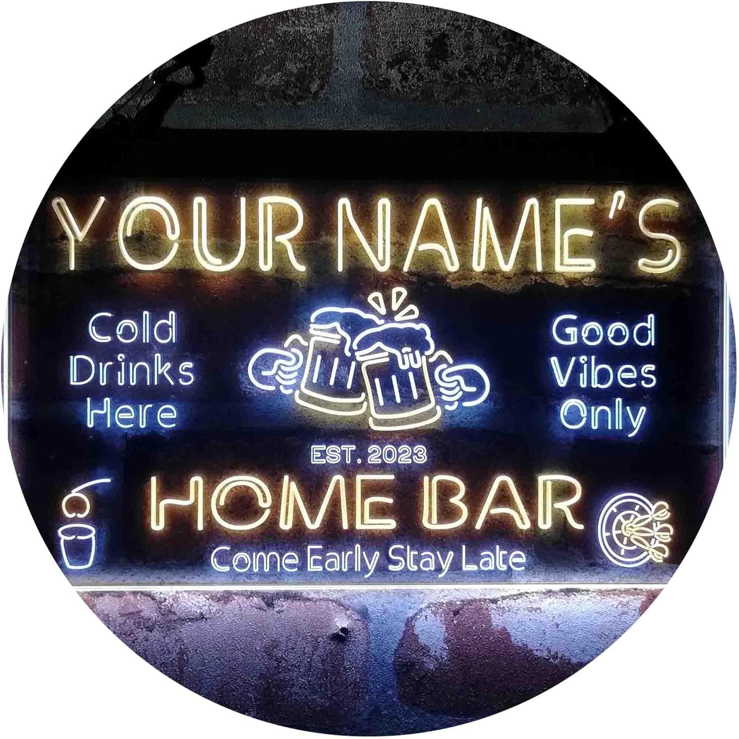 ADVPRO Personalized Your Name Custom Home Bar Beer Established Year Dual Color LED Neon Sign White & Yellow 12 x 8.5 Inches st6s32-p1-tm-wy