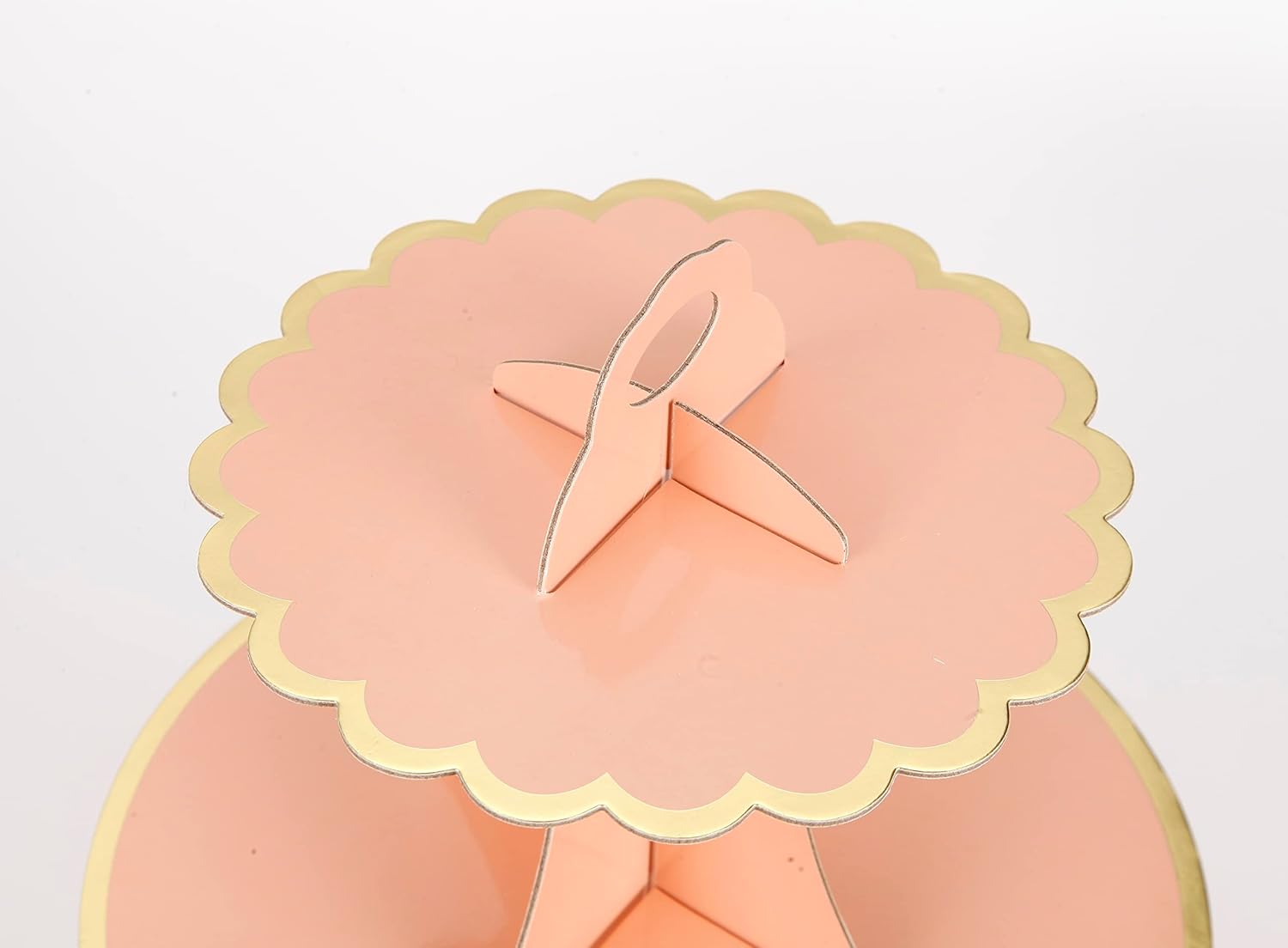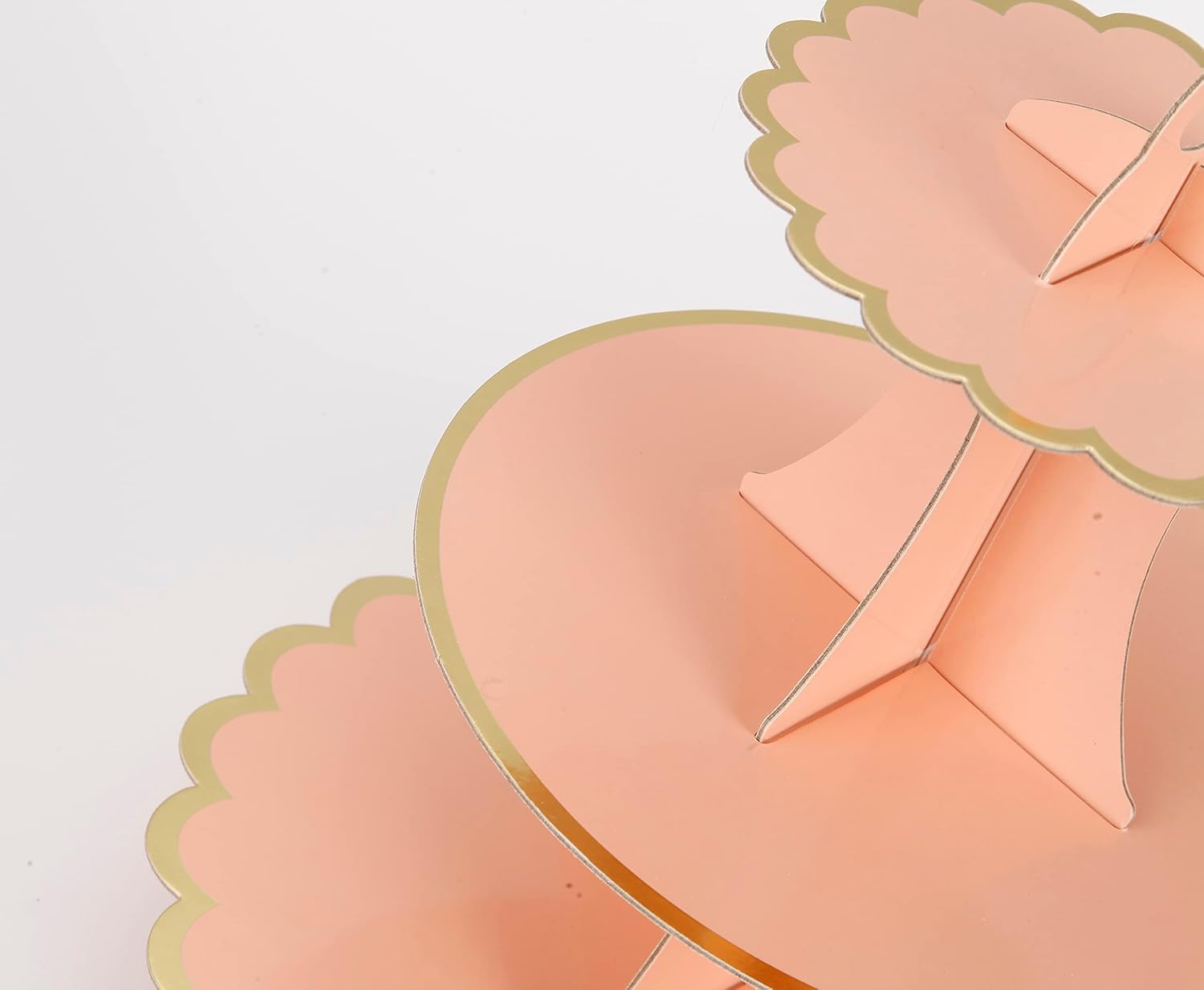 3-Tier Cupcake Stand, Pink Cake Stand Holder, Lace Tiered DIY Cupcake Stand Tower for Dessert Table Displays, Birthday Theme Party Favors Decoration, Floral Tea Party, 12" W x 12.8" H