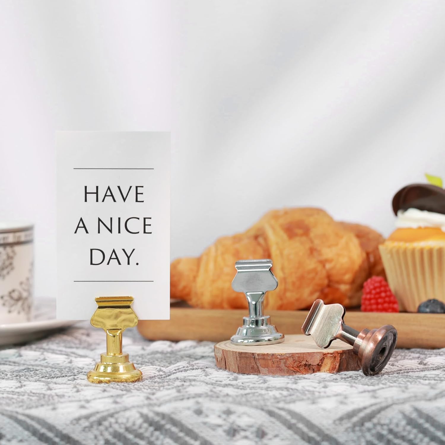 • Package includes: Set include 16 pieces table sign holders, size of photo holder is 1.7 inches, a total of five colors for you to choose, gold, black, silver, copper, rose gold, you can choose according to your occasion need