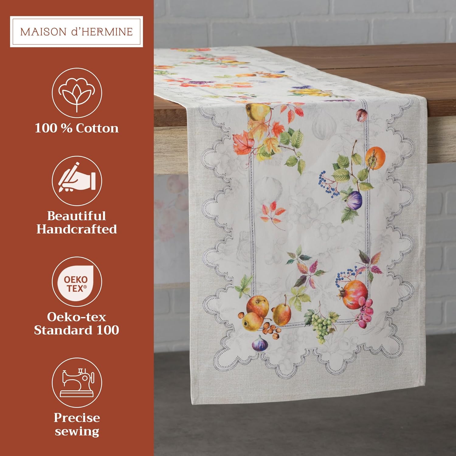 Maison d' Hermine Table Runner 100% Cotton Single Layer Table Runners 108 inches Long for Thanksgiving Christmas Decorations Home Kitchen Dining Party Wedding (Fruit D'Hiver, 14.5" x 108")