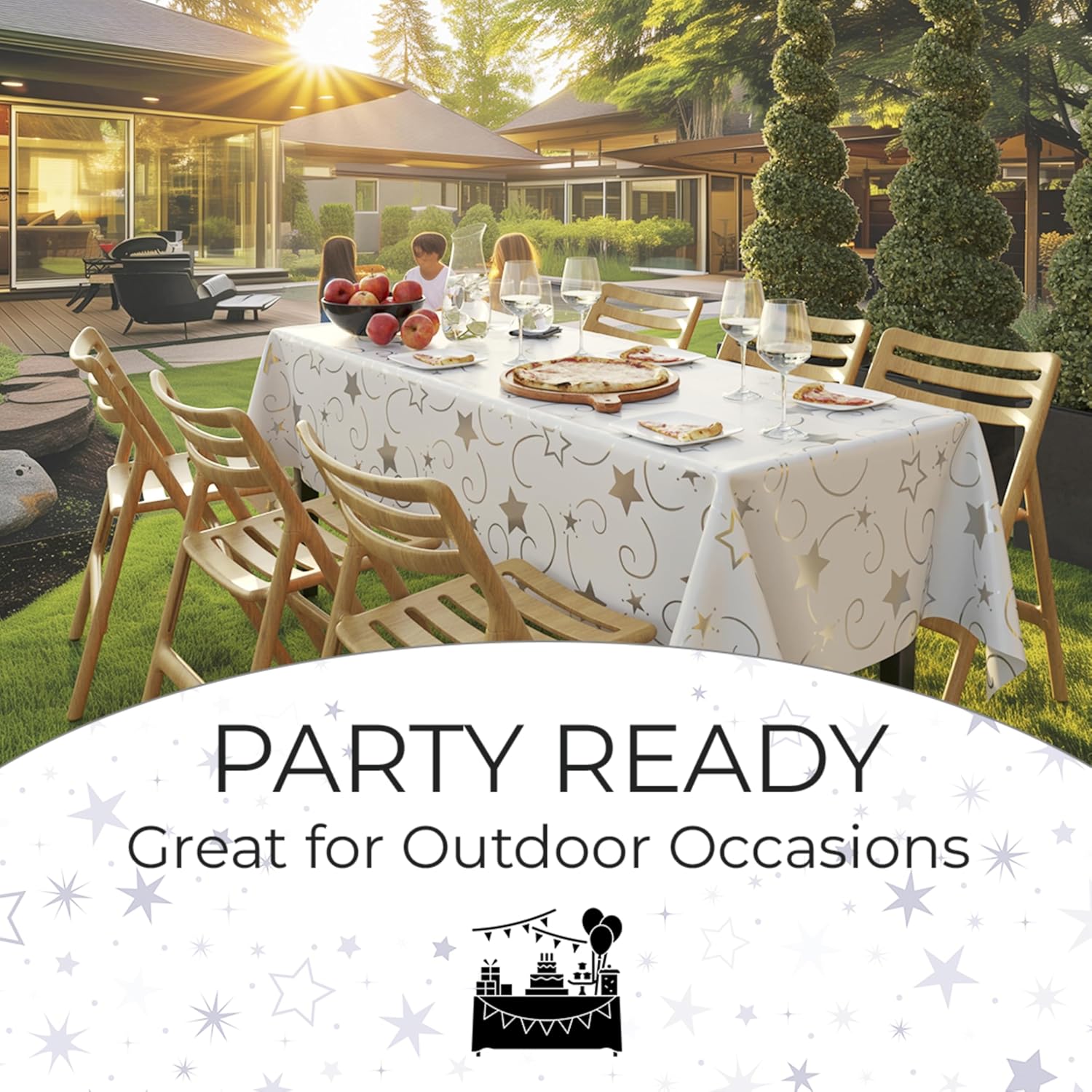 • Quality: Made from premium Tablecloth Plastic, these Rectangle Tablecloths Plastic are waterproof, durable, and spill-resistant. Use these Plastic Table Covers for worry-free protection. These Silver Star table cloths for parties are great for indoor or outdoor events, ensuring your tables stay mess-free and stylish.