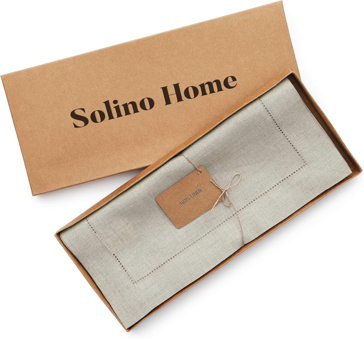 Solino Home Linen Natural Table Runner 72 Inches Long - 100% Pure Linen Hemstitch Table Runner 14 x 72 Inch for Dresser, Dining, Fall, Autumn, Halloween, Thanksgiving, Christmas - Classic Hemstitch