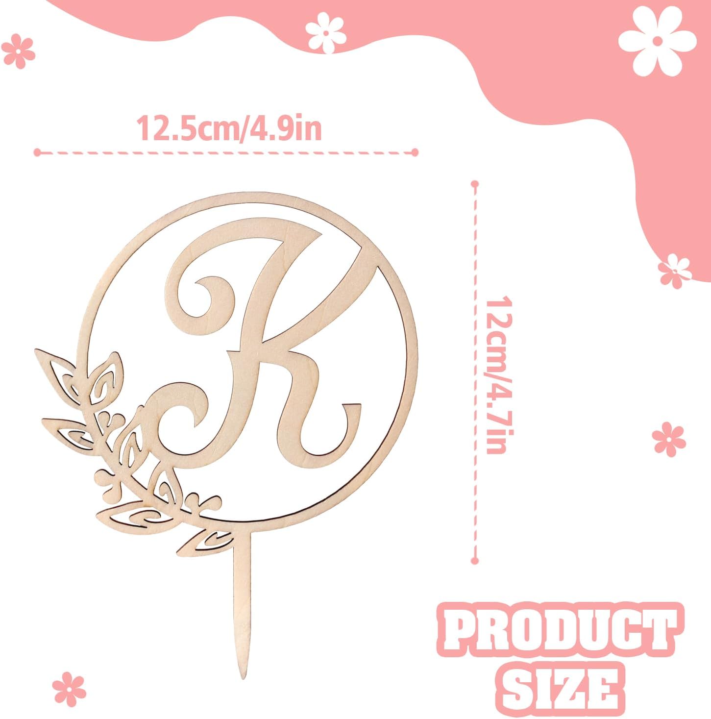 LINGTEER Personalized Inital Letter K Wooden Cake Topper Perfect for Birthday Rustic Wedding Anniversary Party Keepsake Decoration