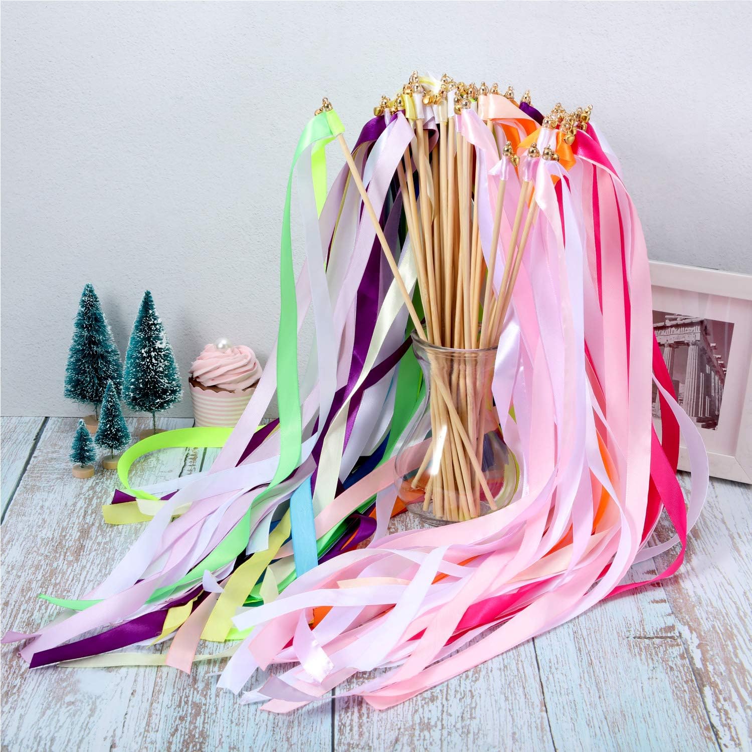 • Large quantity: package include total 40 pieces ribbons sticks in bright colors; Beautiful and romantic when waving these colorful wands, large quantity fit for many people uses