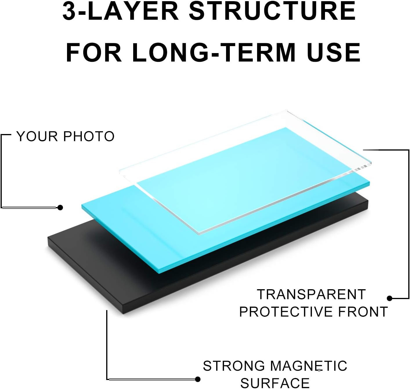 • 【Slam Proof Strong Magnetic Sheet】The strong magnetic sheet ensures the frame will stick to your fridge without falling off even when you slam the door.