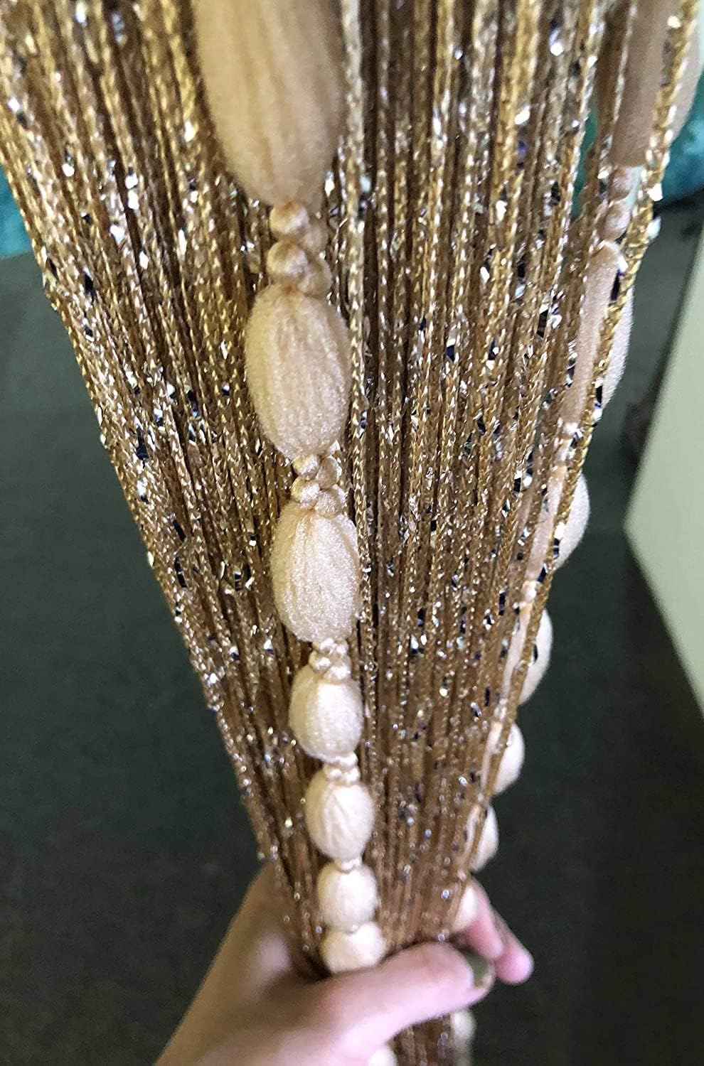 Hysenm Door String 39x79 Inch Curtains Champagne Panel Soft Balls Romantic Glitter Fringe Room Divider Home Décor Wedding Girls Bedroom Window Living Room Backdrop Party Doorways Closet Door,Champagne