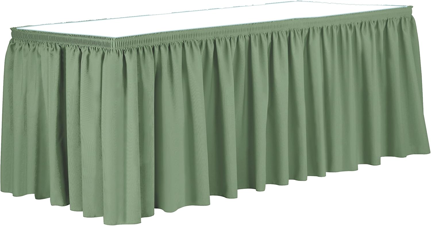 Ultimate Textile Pleat Polyester Fabric Table Skirt - Machine Washable Flame Resistant with Clips for Events, Weddings & Trade Shows, Cut & Sewn in Paterson, NJ - Sage, 17' Shirred Pleat