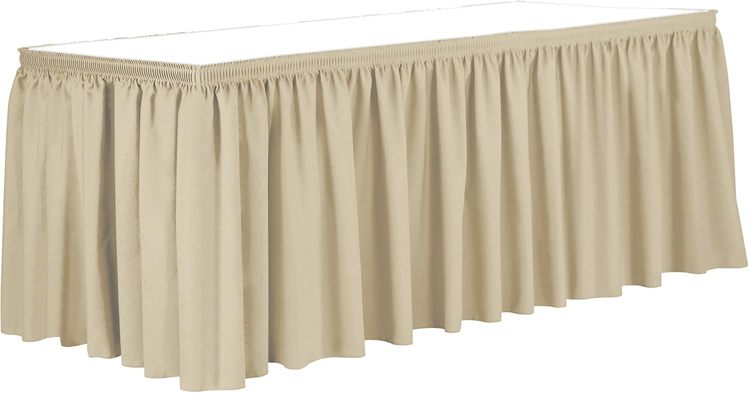 Ultimate Textile Pleat Polyester Fabric Table Skirt - Machine Washable Flame Resistant with Clips for Events, Weddings & Trade Shows, Cut & Sewn in Paterson, NJ - Tan, 14' Shirred Pleat