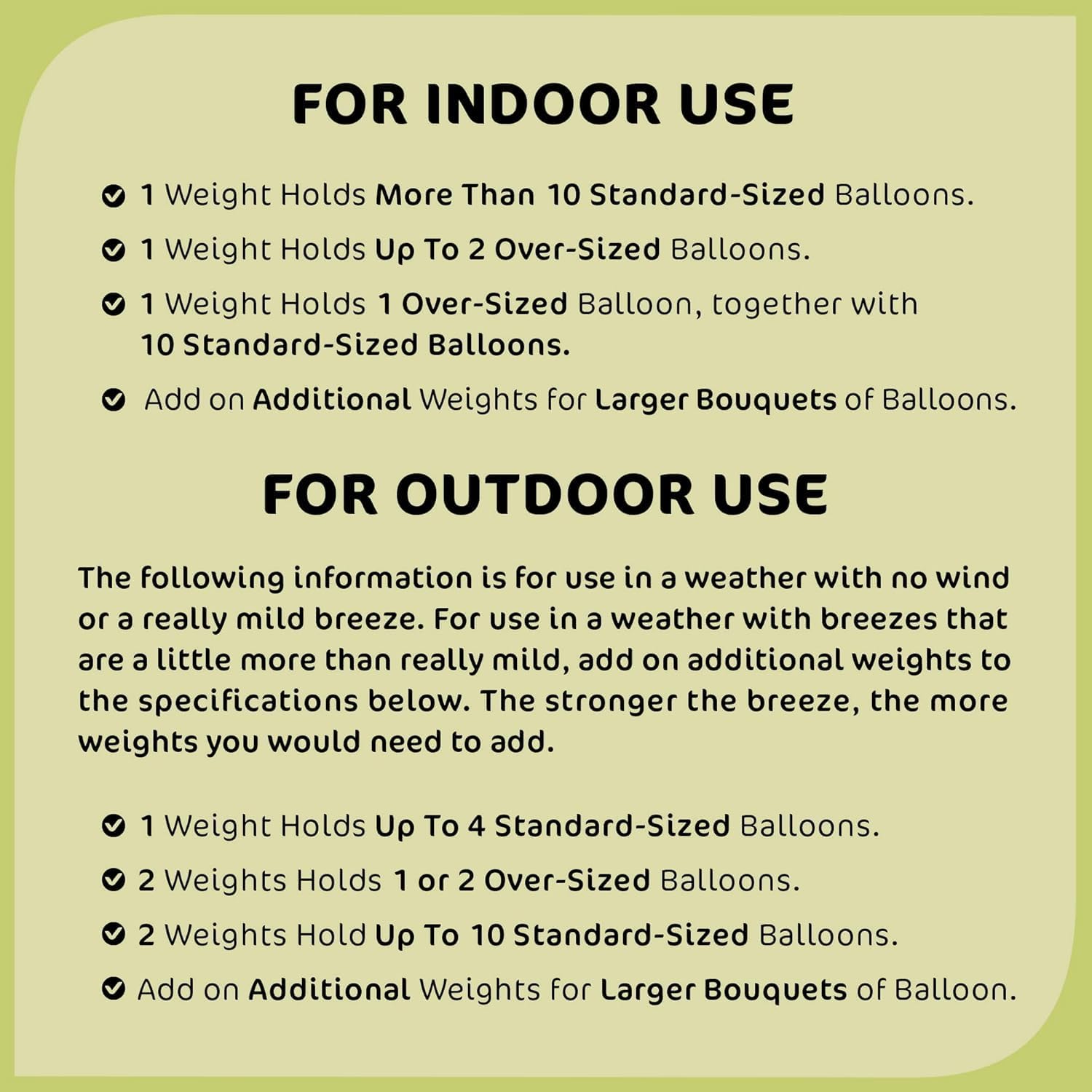 • Get These, For A No-Fail Experience! Do you need balloon holders for oversized balloons, large bouquets, or an indoor or outdoor event? Buy only Srenta’s gold weights. Refer to our images for guidance on how to use them in any setting, and rest assured that your needs will be met.