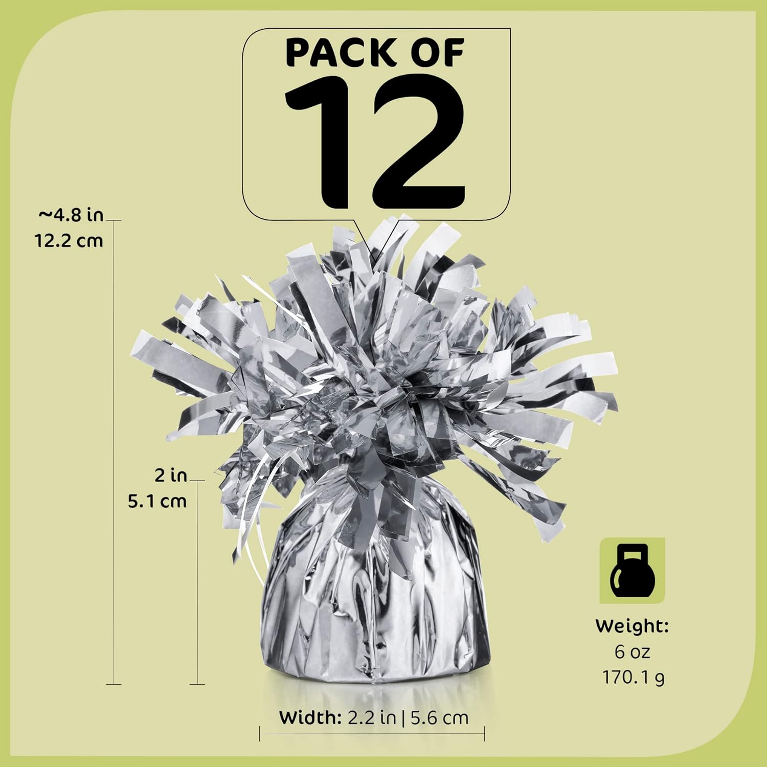 Silver Balloon Weights, Heavy Balloon Weight Pack of 12 Metallic Foil Weights for Balloons, Birthday Party & Wedding Table Centerpiece Ballon Weight 4.8’’ DIY Ballon Weights for Helium Balloons